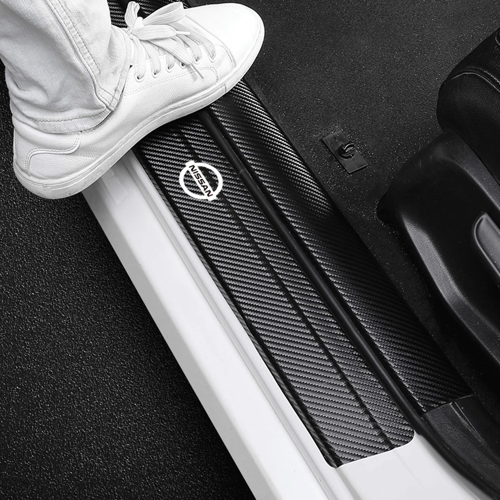 Автомобильные наклейки на порог из углеродного волокна, 4 шт., наклейки против царапин для Nissan Qashqai X J10 J11 Trail Tiida Juke NOTE Maxima
