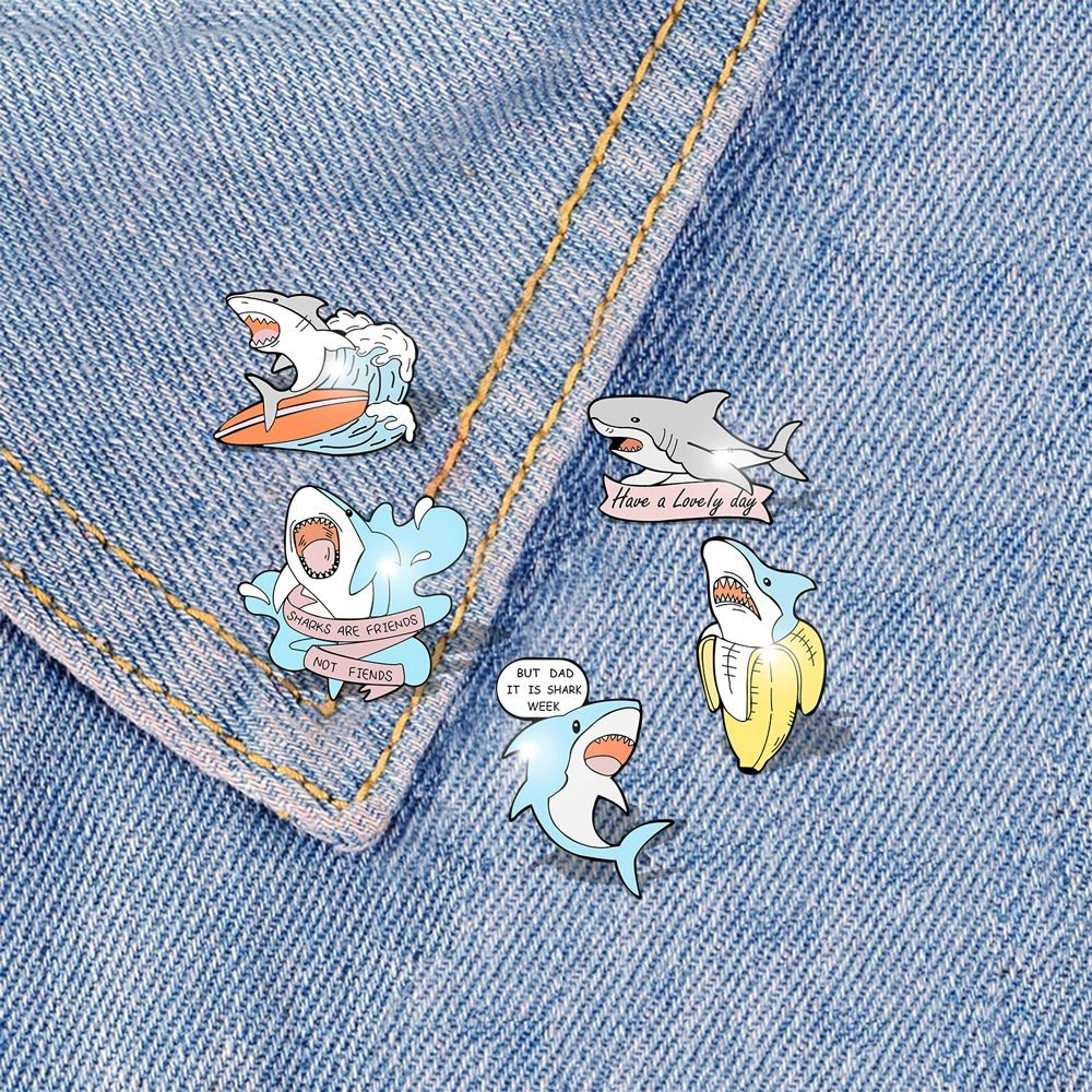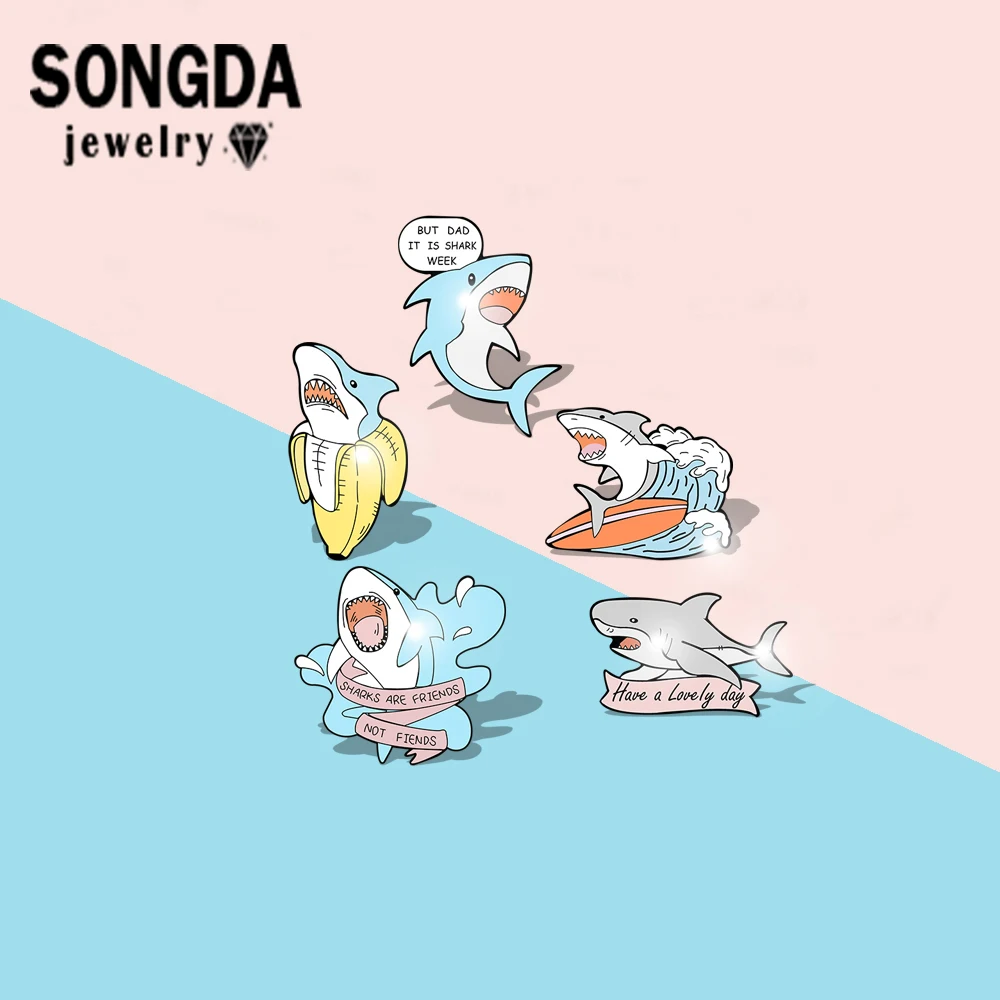 SONGDA Мультфильм Акула лацкан булавки Акула банан серфинг баннер милый дизайн узоры джинсовая рубашка значки ювелирные изделия для ребенка лучший подарок