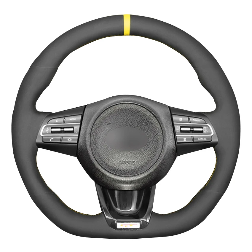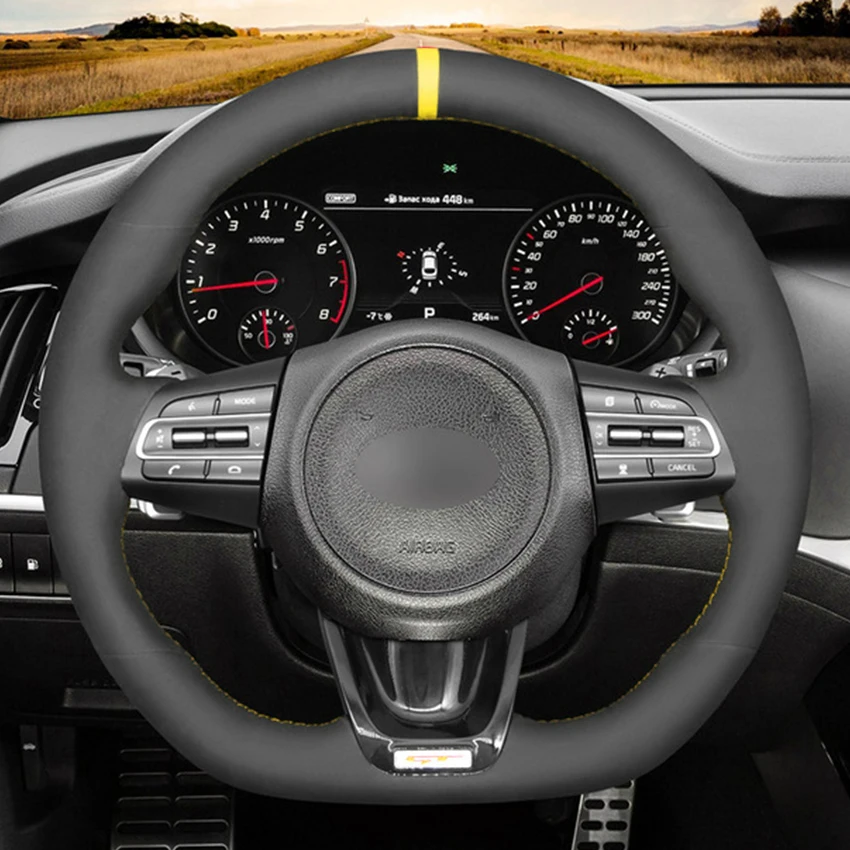 Сшитый вручную мягкий черный замшевый желтый Маркер чехол рулевого колеса автомобиля для Kia Stinger 2017 2018 2019 2020