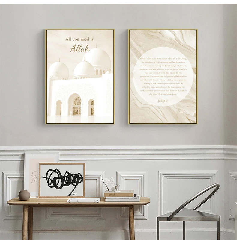 Исламская настенная Картина на холсте бежевого цвета плакат и принт...