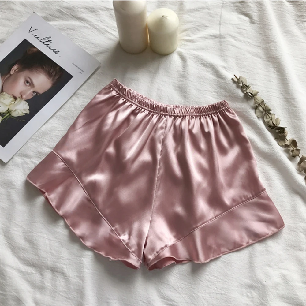 Короткие штаны для сна, летние защитные штаны, женская верхняя одежда, матовые шелковые свободные шорты с оборками