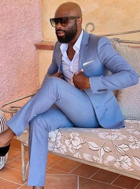 Мужские облегающие костюмы VEIAI, синие повседневные деловые костюмы из двух предметов (пиджак + брюки) с отложным воротником, мужские смокинги