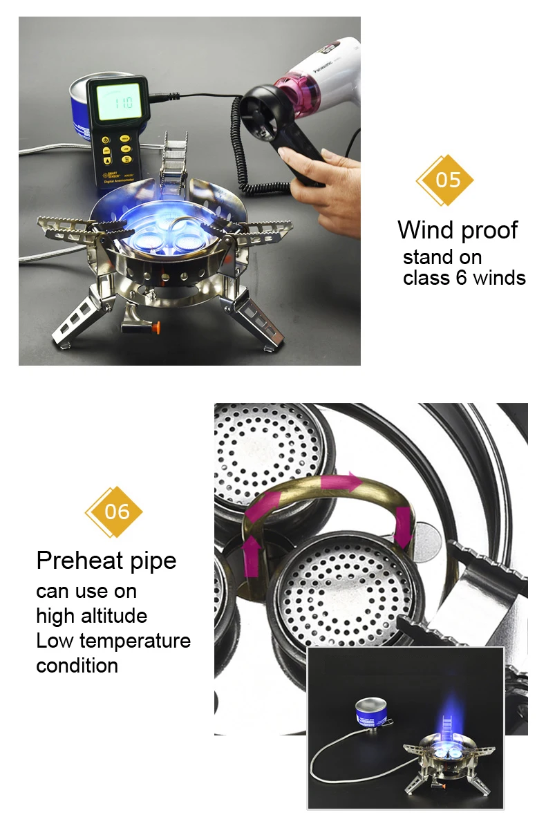 -Изготовлен из алюминиевого сплава, медного сплава и нержавеющей стали, легкий, ветрозащитный и прочный
