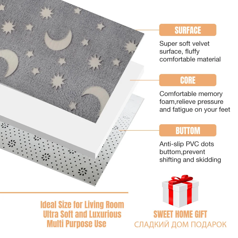 Ультрамягкий Пушистый Ковер для гостиной, светящийся коврик с ворсом искусственный мех, нескользящий напольный ковер с принтом, коврики для спальни, детской комнаты