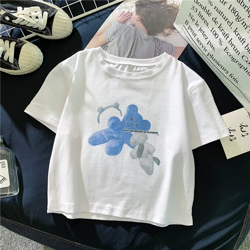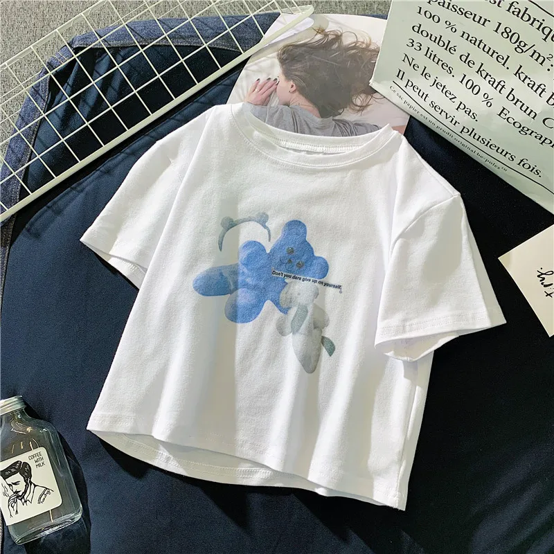 Женская футболка с рисунком медведя из аниме y2k, топ, нечеткая кавайная Винтажная футболка в стиле Харадзюку, kpop, короткая футболка с графическим рисунком, Корейская Эстетическая одежда