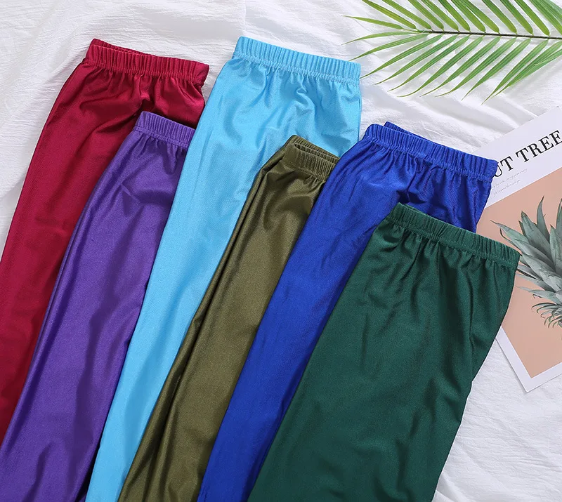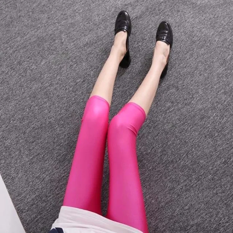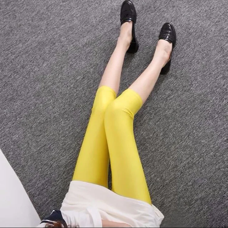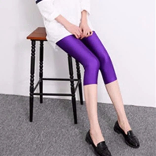 Женские блестящие леггинсы YRRETY, летние флуоресцентные Блестящие Брюки из спандекса, эластичные повседневные брюки капри с высокой талией, штаны для спортзала