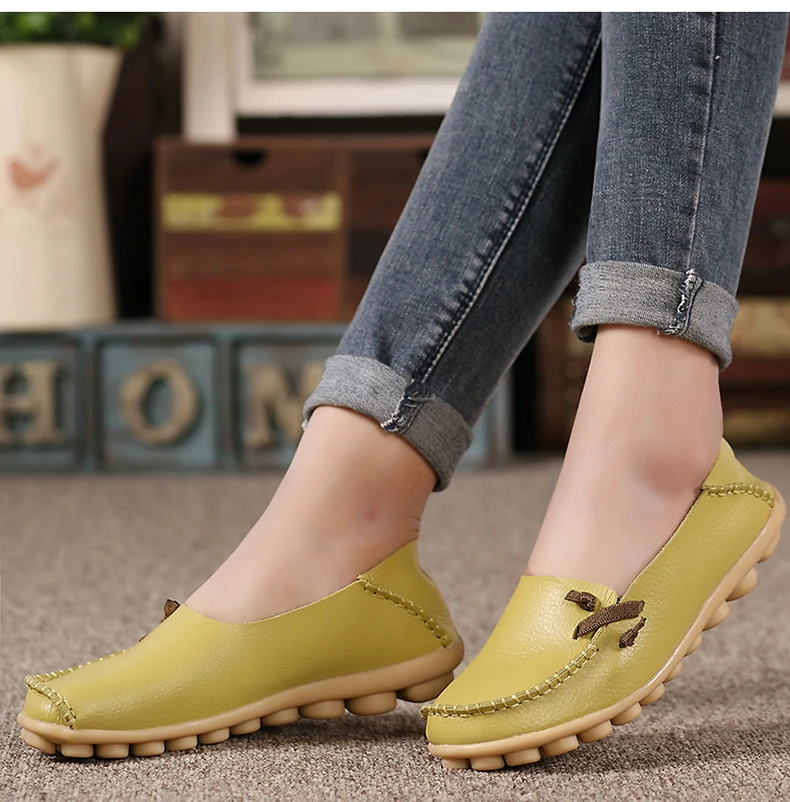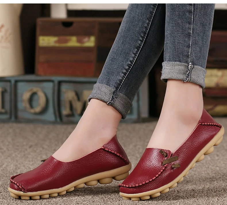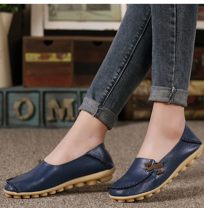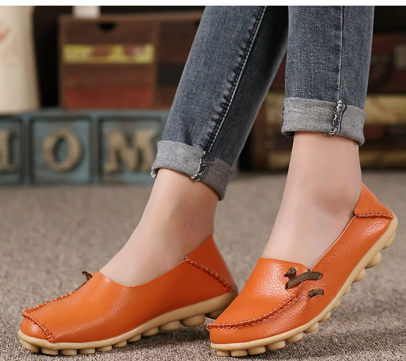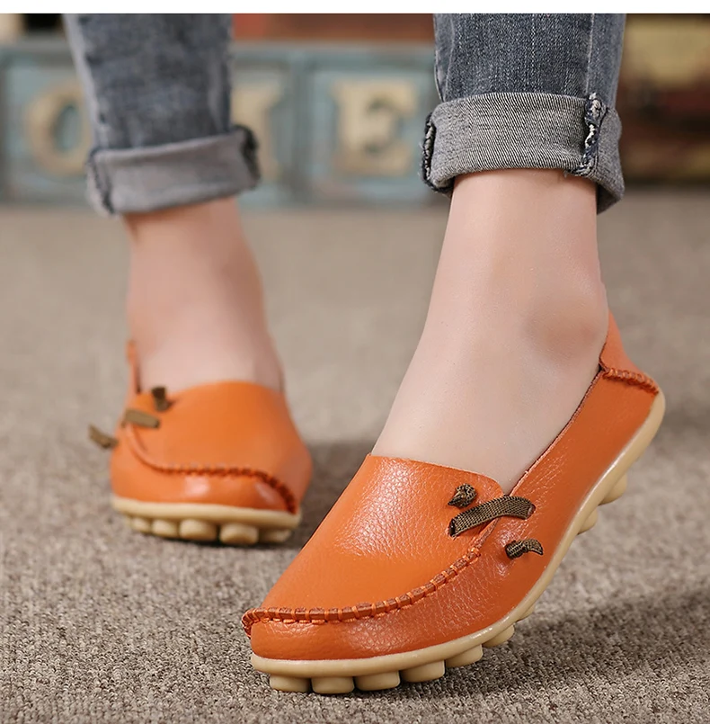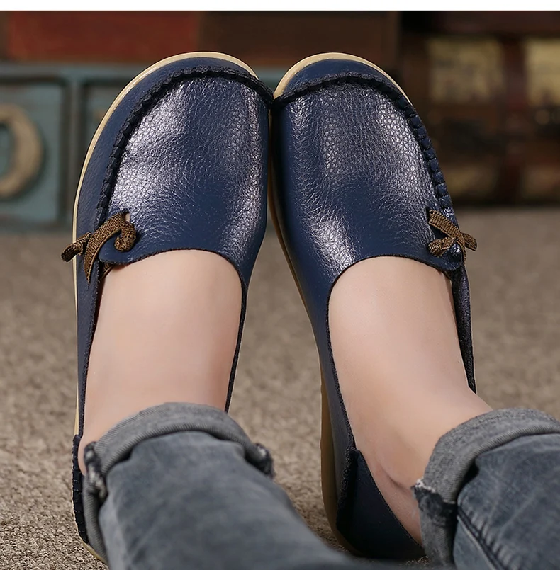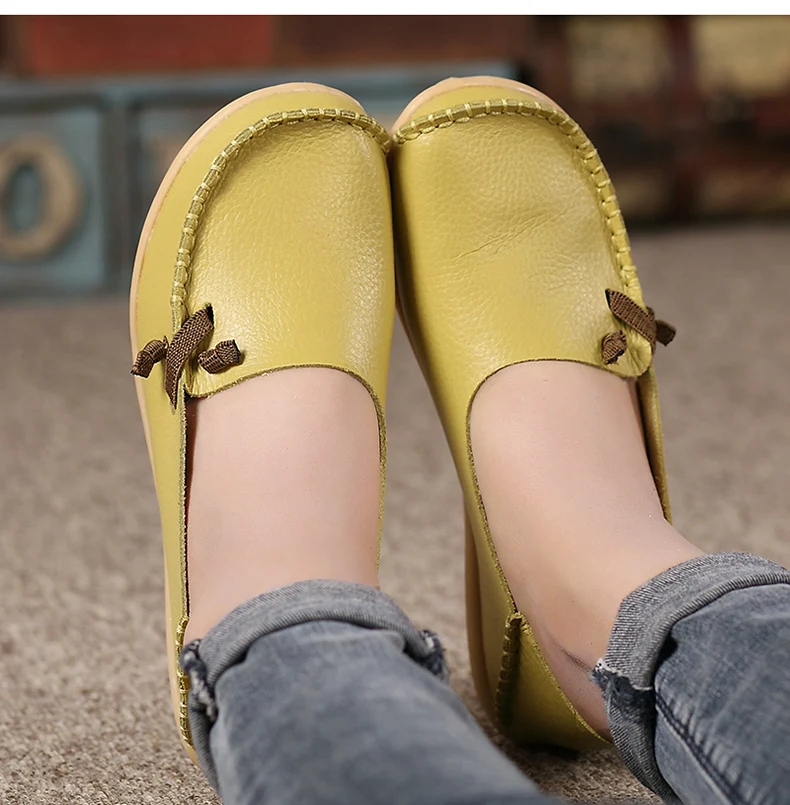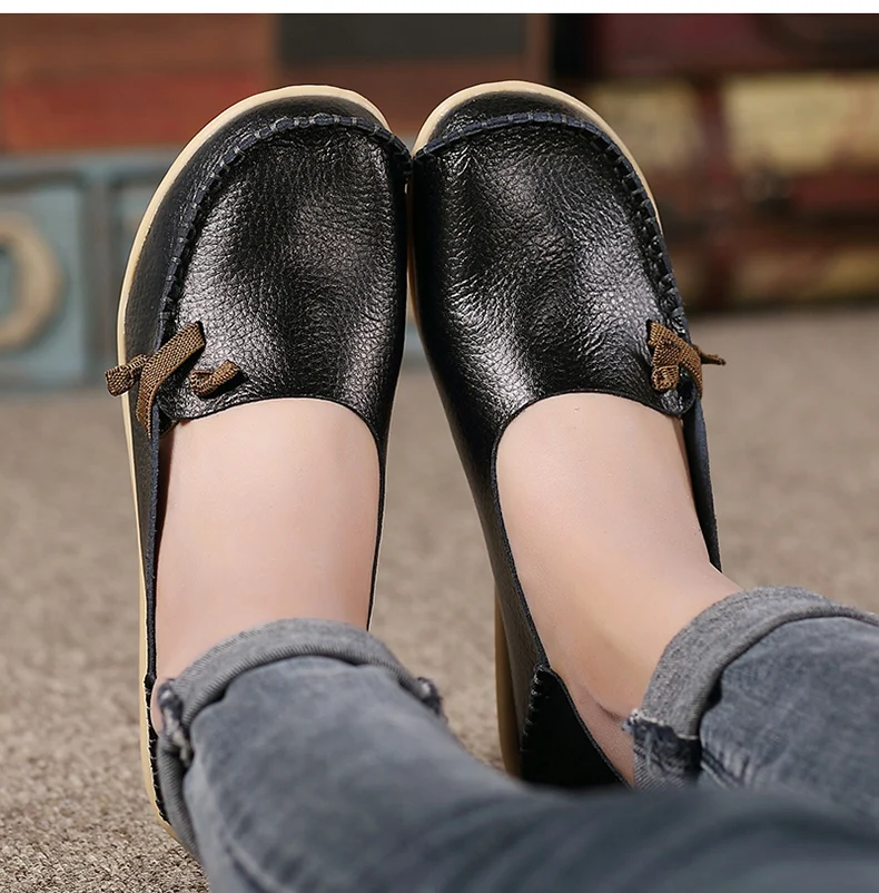 Женские балетки EOFK из натуральной кожи, мягкие лоферы, плоская подошва, для вождения, большие размеры до 44-го, весна-лето