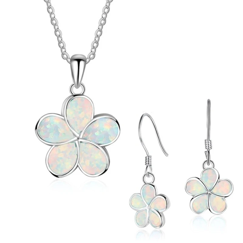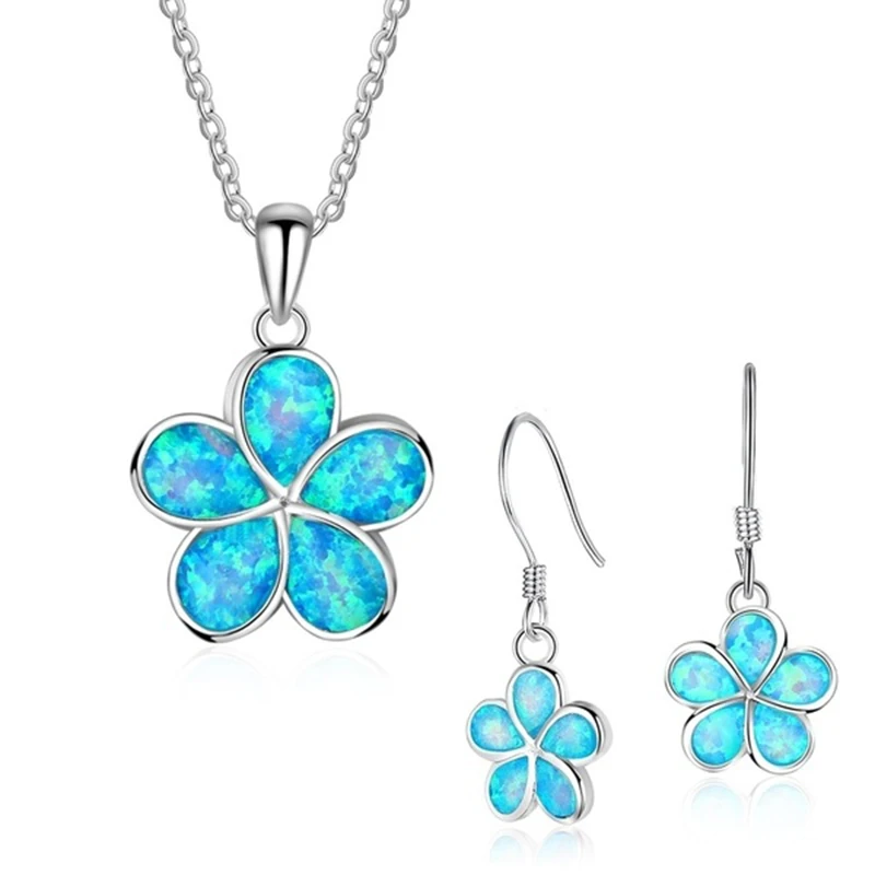 Женский комплект из колье и серёг, с имитацией синего огненного опала