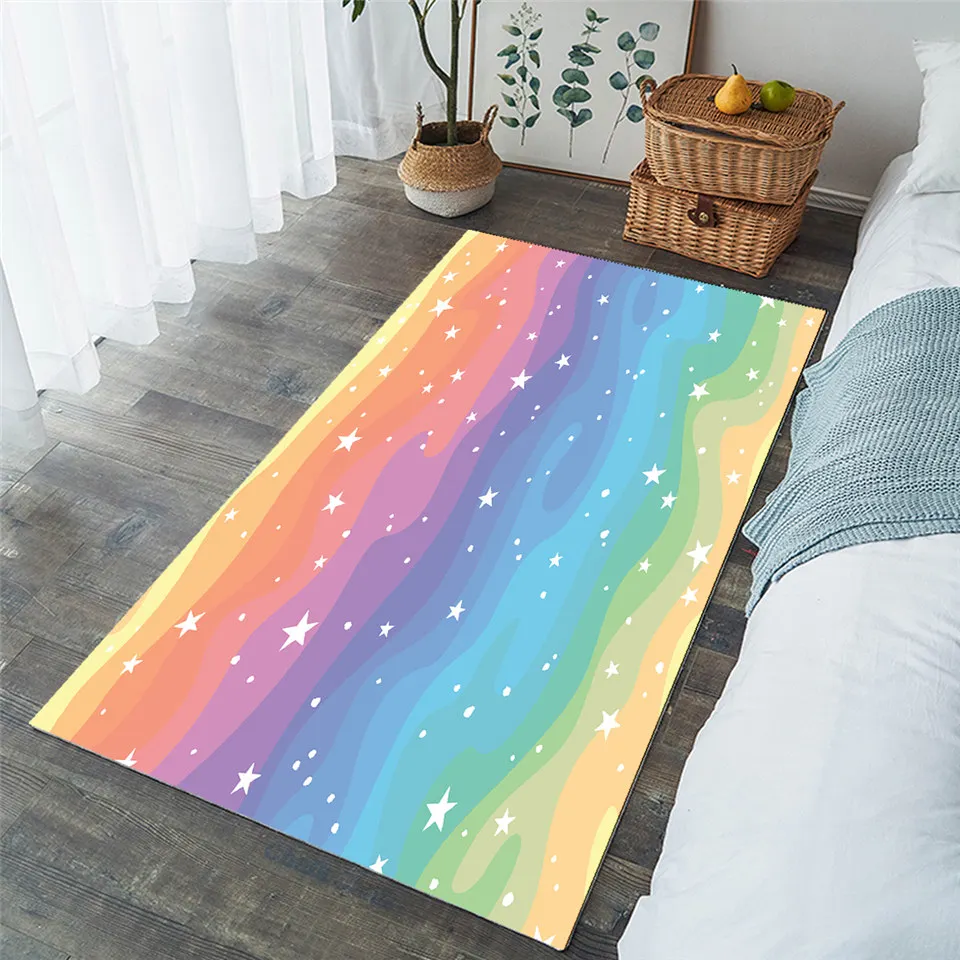 Большой Радужный ковер BeddingOutlet для спальни, цветной коврик для гостиной, фиолетовый, зеленый, акварельный ковер, декоративный коврик со звездами