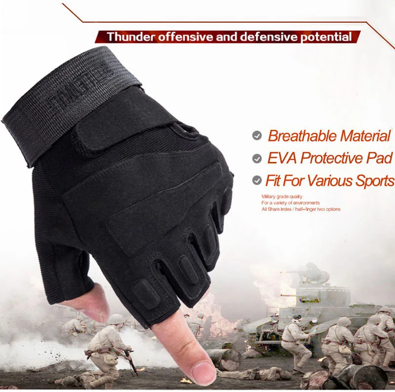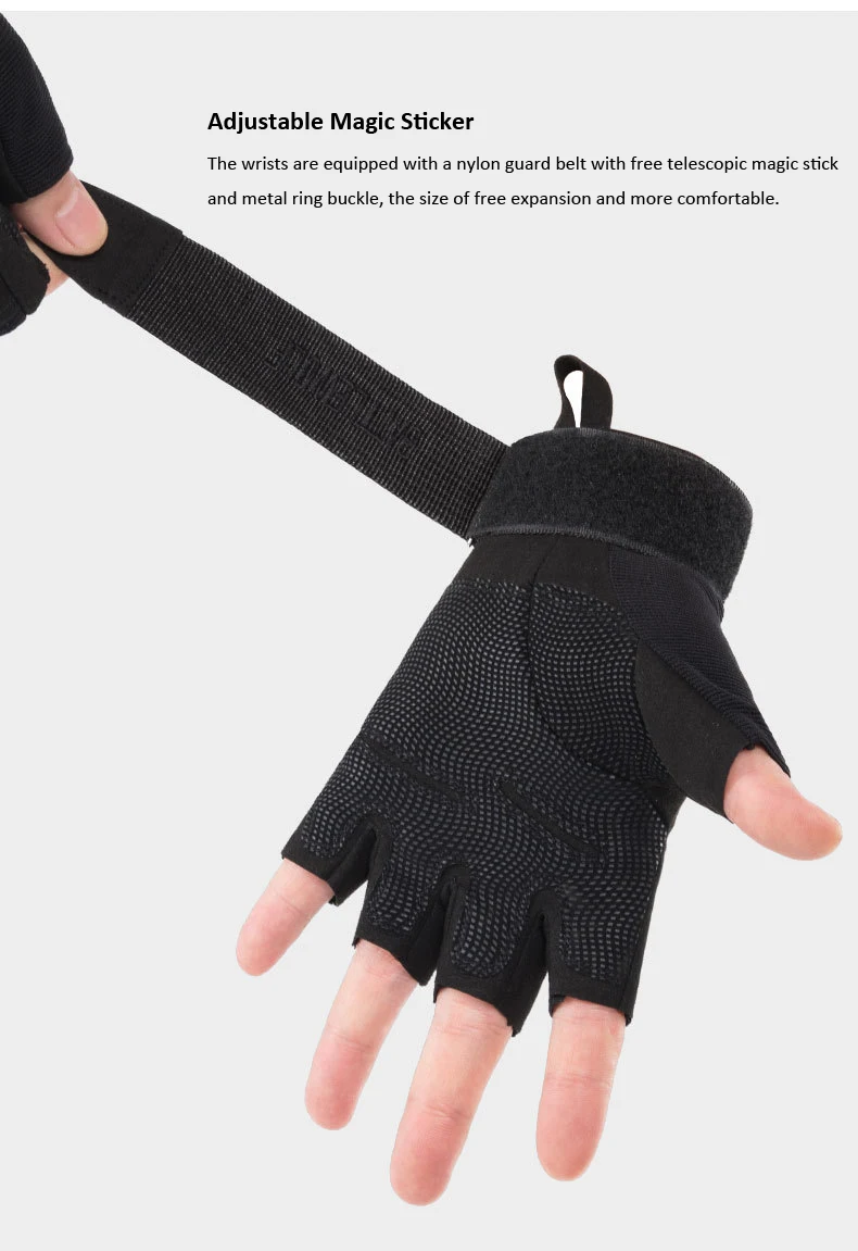 Удобный и легкий для ношения, изготовленный из нейлона и высокопрочного клея из волокна, вентиляционный дизайн, легко дышать для ваших пальцев.Синтетическая конструкция обеспечивает хорошую защиту, утолщенные защитные коврики на спине и пальце, эффективно уменьшает воздействие и истирание. Нескользящая накладка на ладонь для легкого захвата.Застежка-липучка на ладони и запястье позволяет свободно регулировать герметичность.Регулируемый ремешок с застежкой на липучке, помогает лучше защитить запястья при занятиях спортом.Стильный полупальцевый дизайн обеспечивает максимальную тактильность и долговечность, пальцы подвергаются воздействию, вы все еще можете напечатать и использовать свой сенсорный экран для телефона или для гибких рук.Идеальный подарок для любителей спорта на открытом воздухе, идеально подходит в качестве тактических перчаток для военных занятий спортом на открытом воздухе, Походов, Кемпинга, альпинизма, мотоцикла, ATV, езды на велосипеде, страйкбола, перчатки для стрельбы.