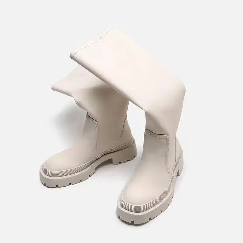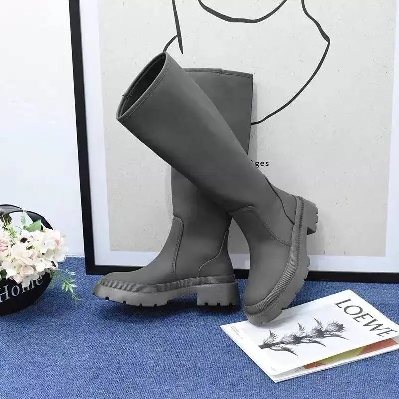 Женские сапоги цвета хаки; Сапоги на плоской подошве; Женские сапоги до колена с круглым носком для улицы