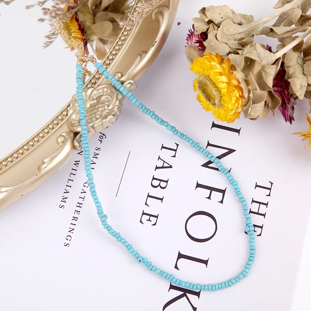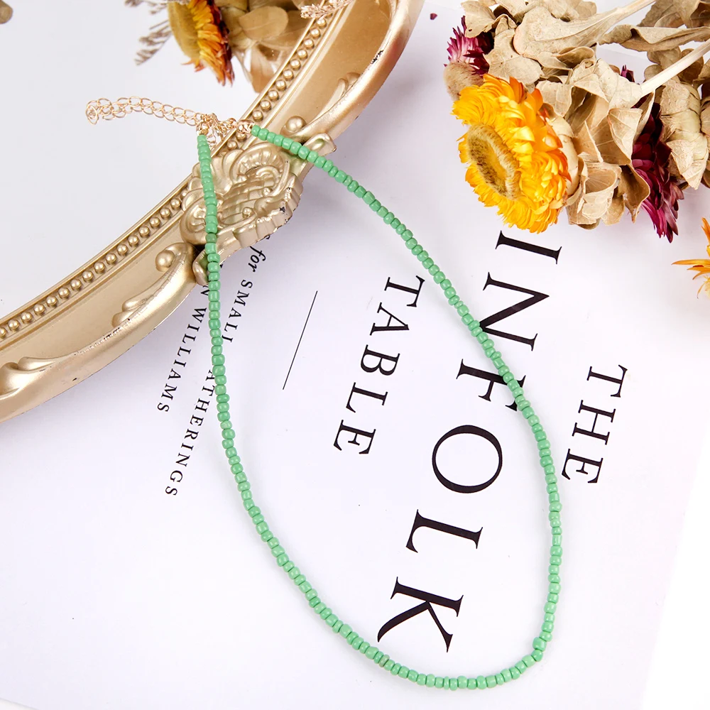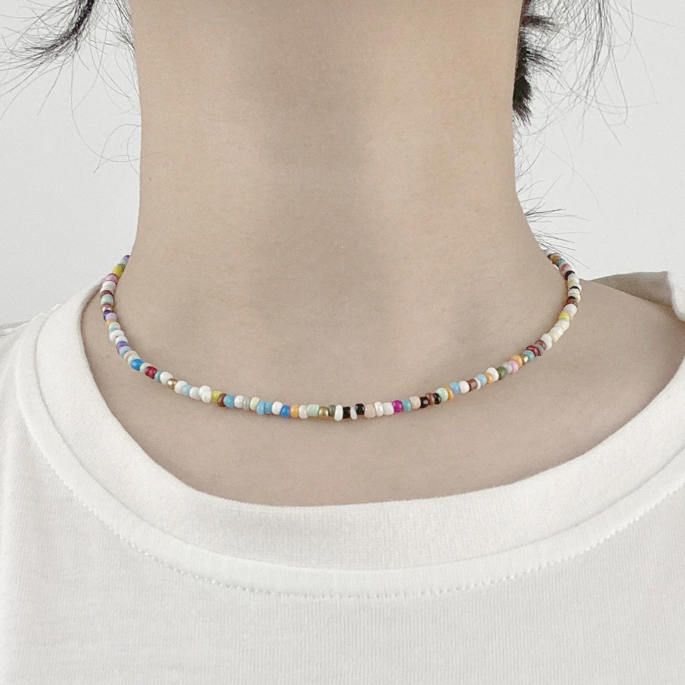 Богемное ожерелье из разноцветных рисовых бусин для женщин и девочек-подростков, регулируемый чокер до ключиц, ожерелье, модное пляжное ювелирное изделие