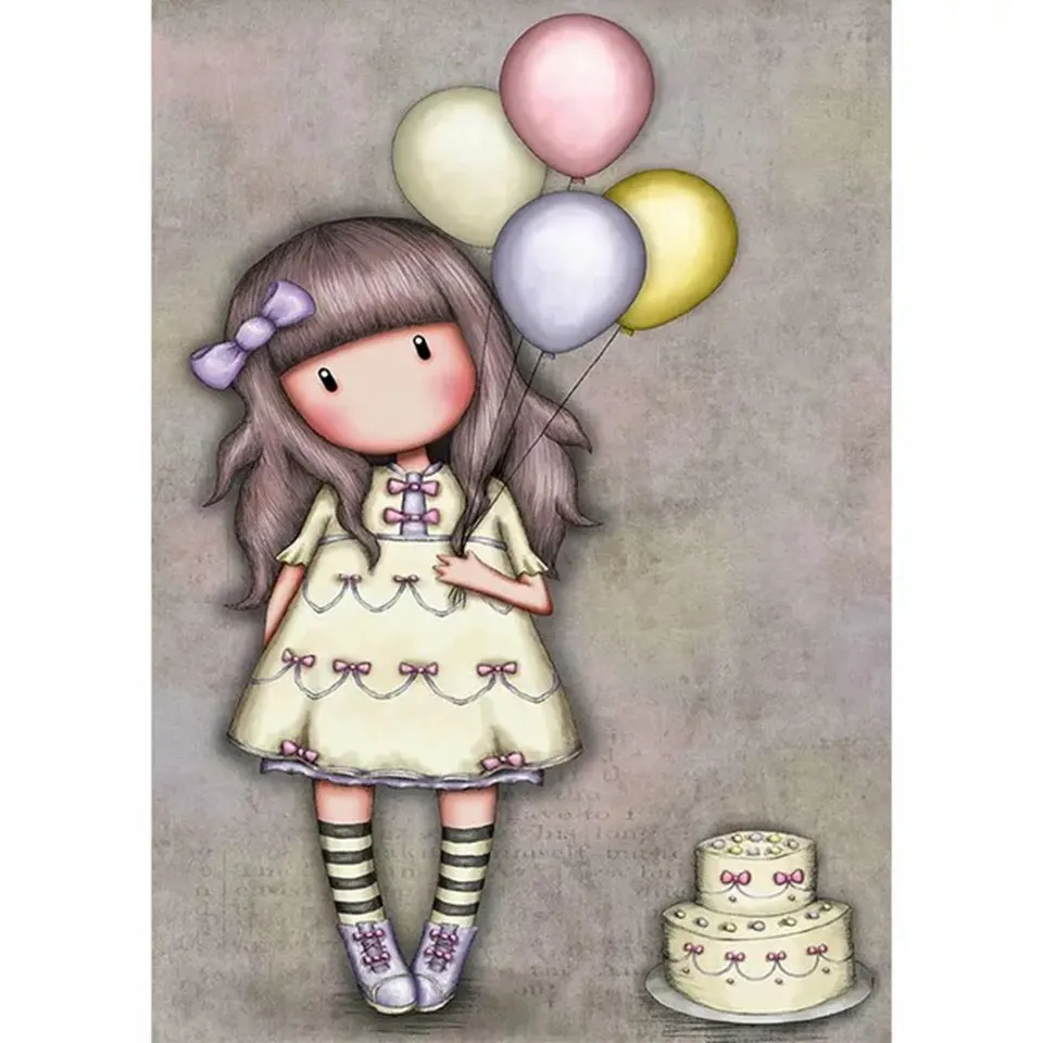 Алмазная 5D картина сделай сам, мультяшная маленькая девочка, полностью круглая Алмазная вышивка, печать, предметы интерьера, декор для гостиной, подарок