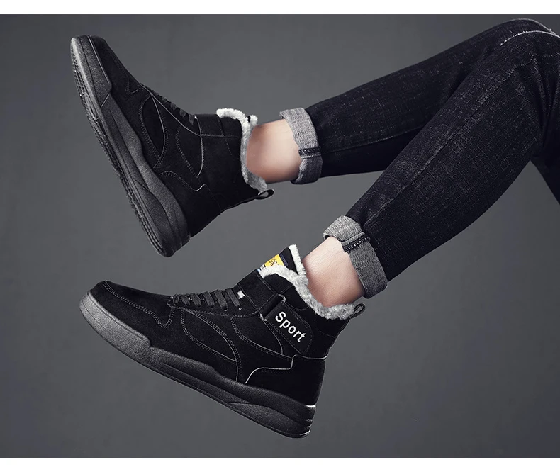 Мужские кроссовки с плюшевой подкладкой, черные повседневные ботинки, теплая спортивная обувь для бега, новинка зимнего сезона 2019