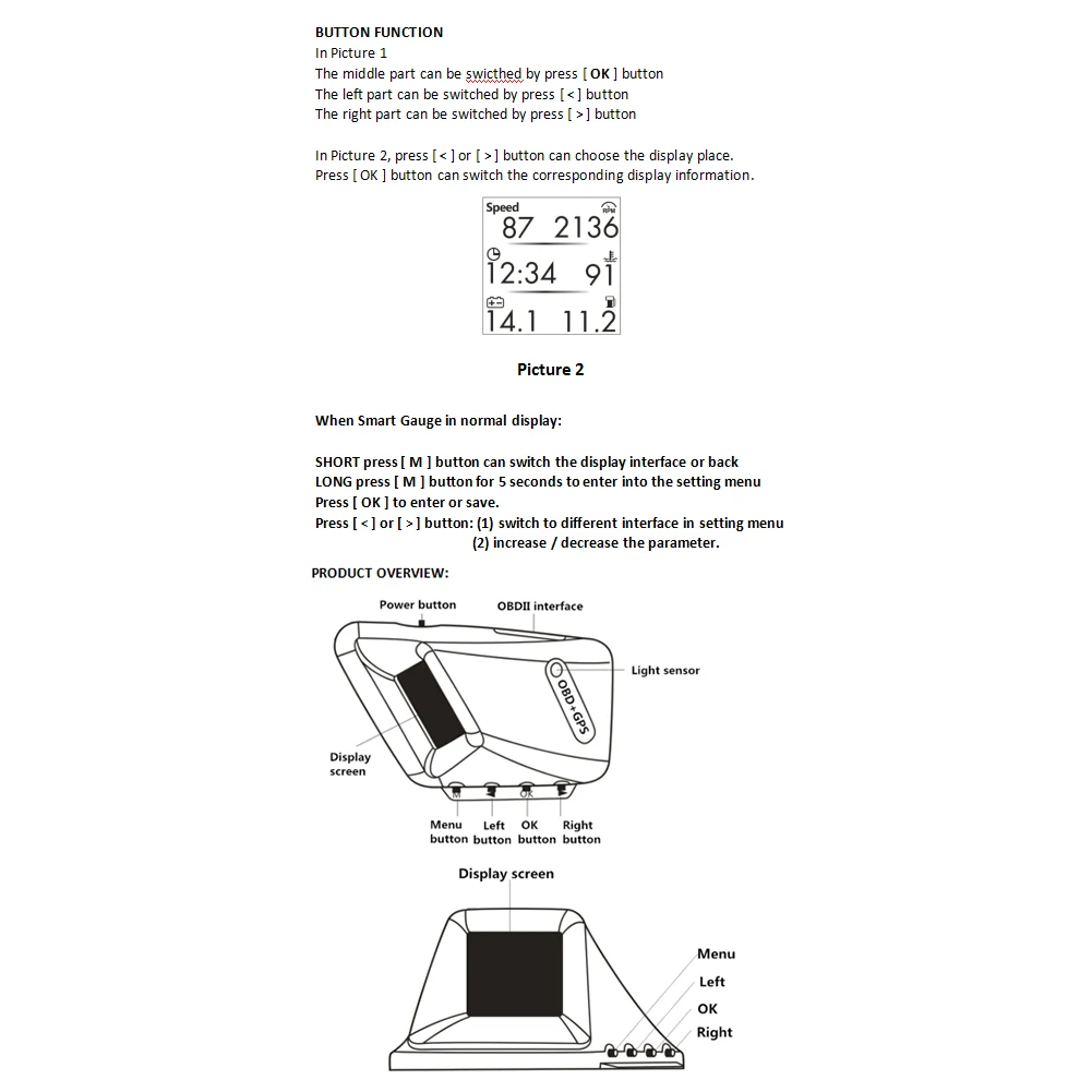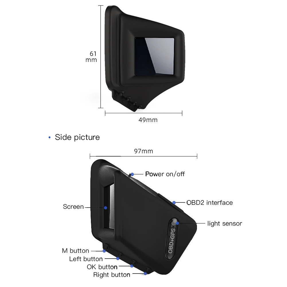 OBD System FeaturesRPM, Fuel Consumption(KM/L & L/100KM), Voltage, Water Temp. Oil Temp.