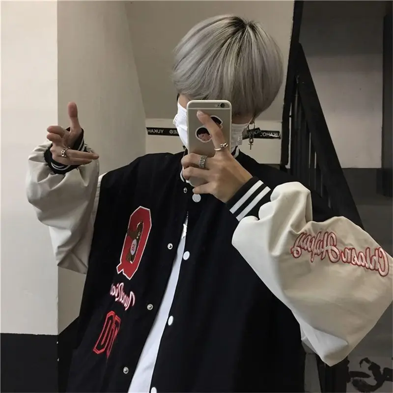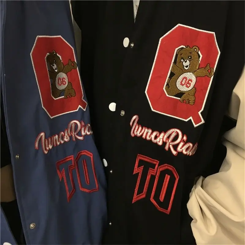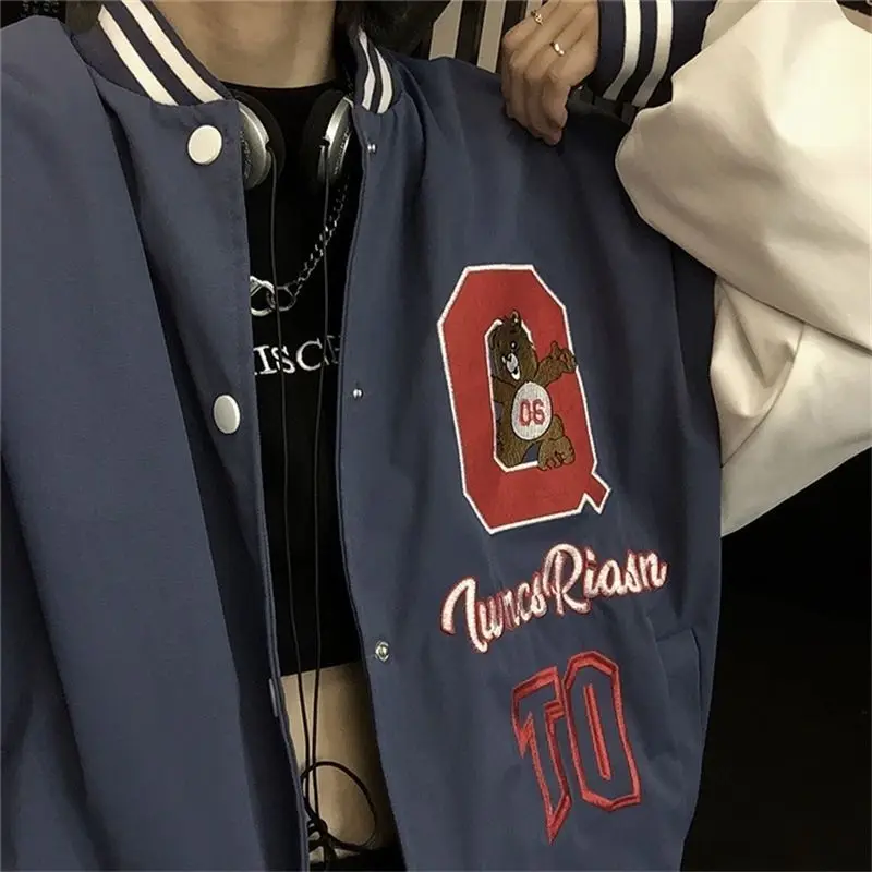 Женская бейсбольная куртка, демисезонная куртка оверсайз в стиле Харадзюку, с надписью медведя, в Корейском стиле, 2021