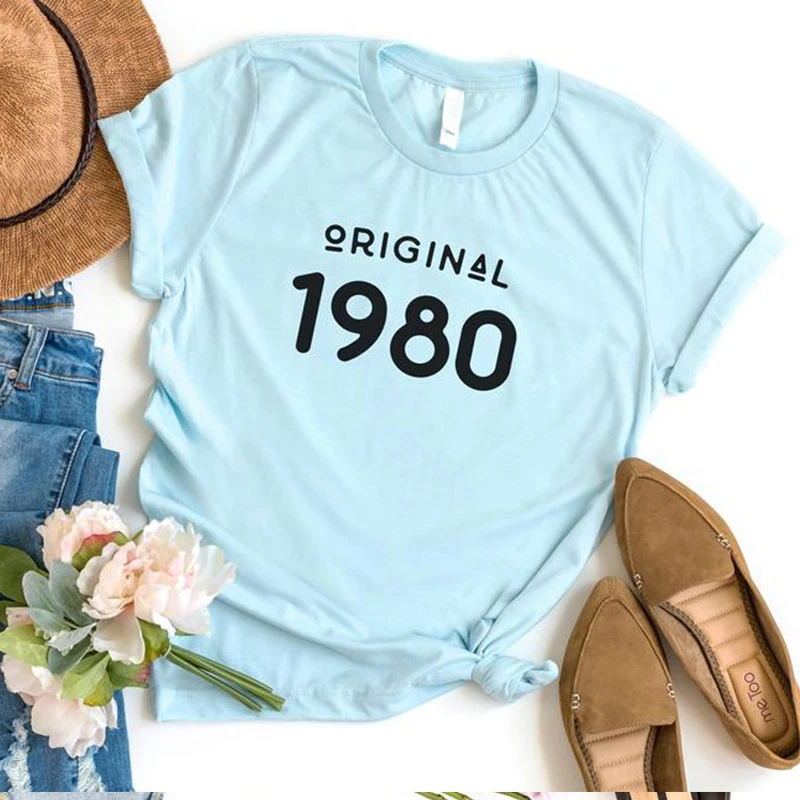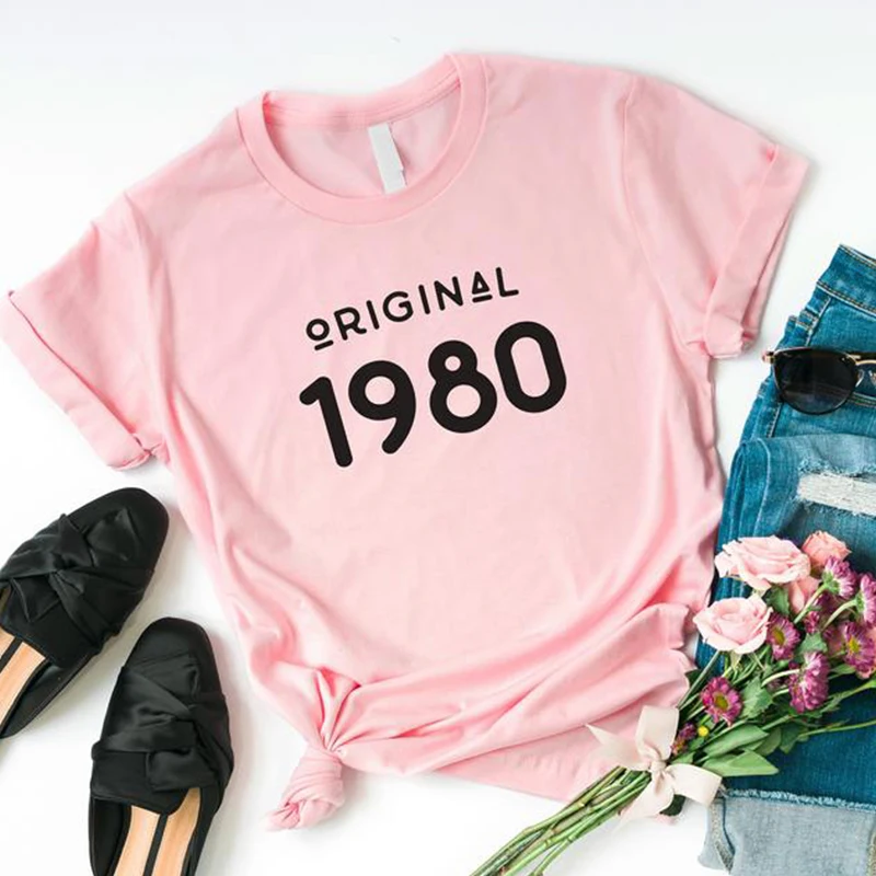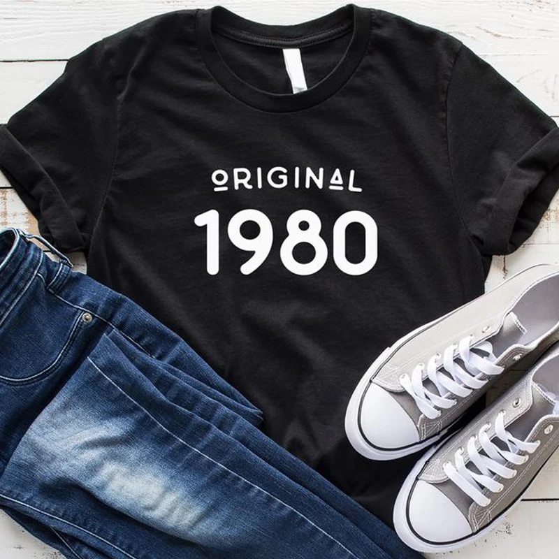 Винтажные 1980 футболка женская обувь 41 лет 41st подарок на день рождения для девочек, мамы, жена, дочь вечерние Топ тенниска из хлопка уличная футболка