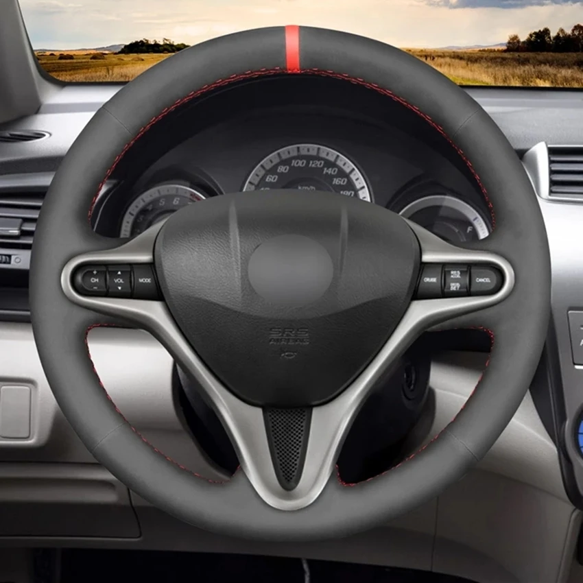 Рука Шить мягкая черная замша красный маркер чехол рулевого колеса автомобиля для Honda Fit 2009-2013 город 2009-2013 Джаз 2009-2013 Insight 20