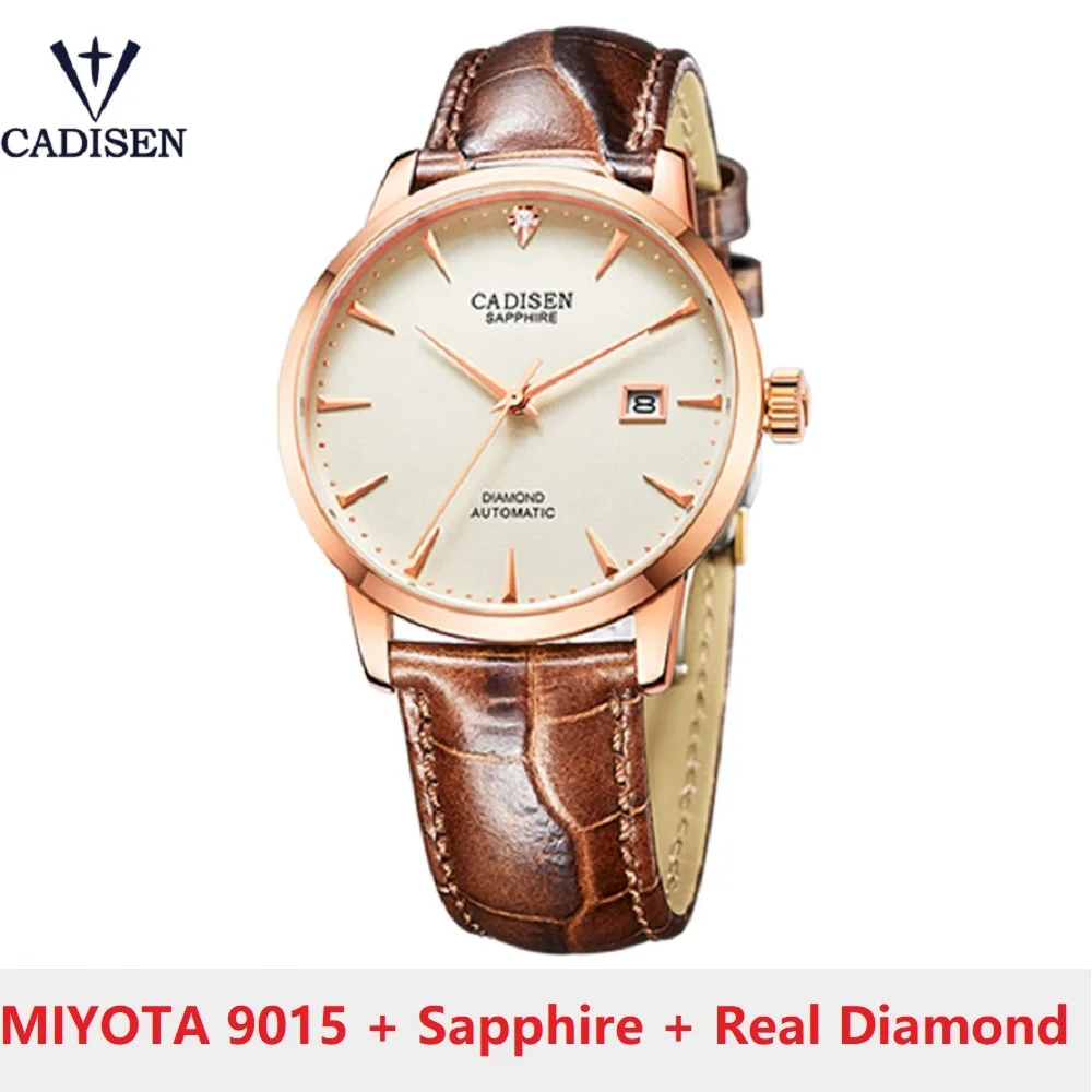 CADISEN мужские часы автоматические механические наручные часы MIYOTA 9015 Топ бренд Роскошные настоящие бриллиантовые часы изогнутые сапфировые стеклянные часы