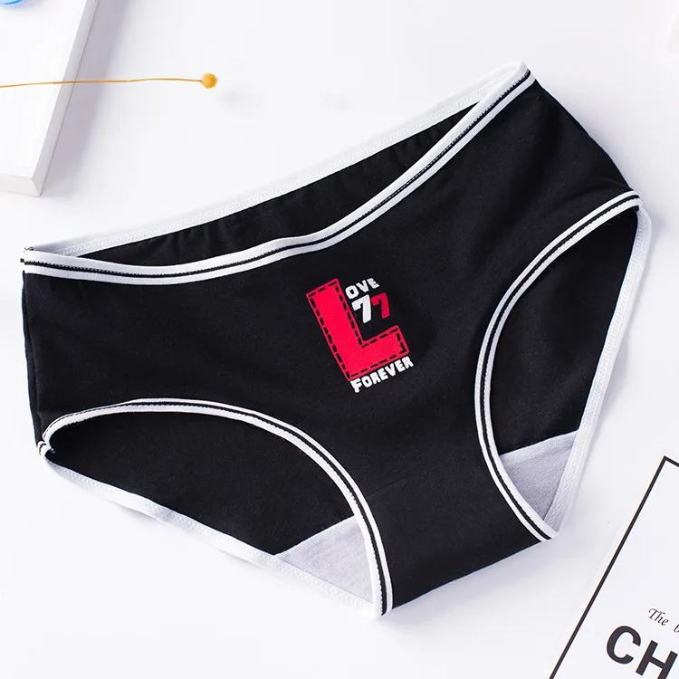 Нижнее белье из серии Black Letter Cat, спортивные женские хлопковые трусики со средней талией из чистого хлопка, женские хлопковые трусики, трусики