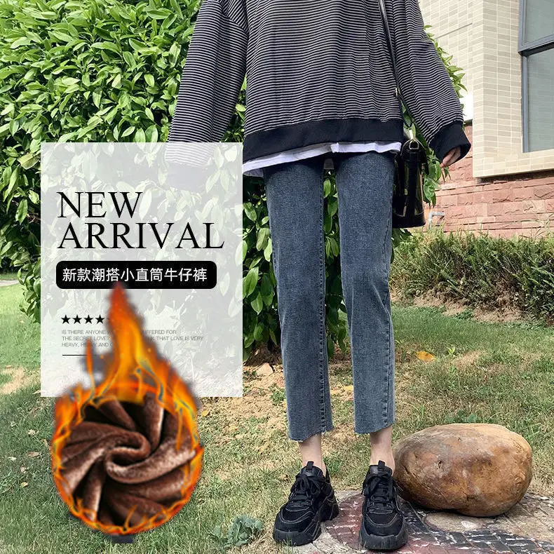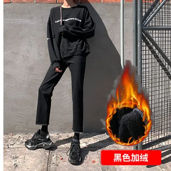 Женские джинсовые брюки на осень и зиму, эластичные прямые брюки