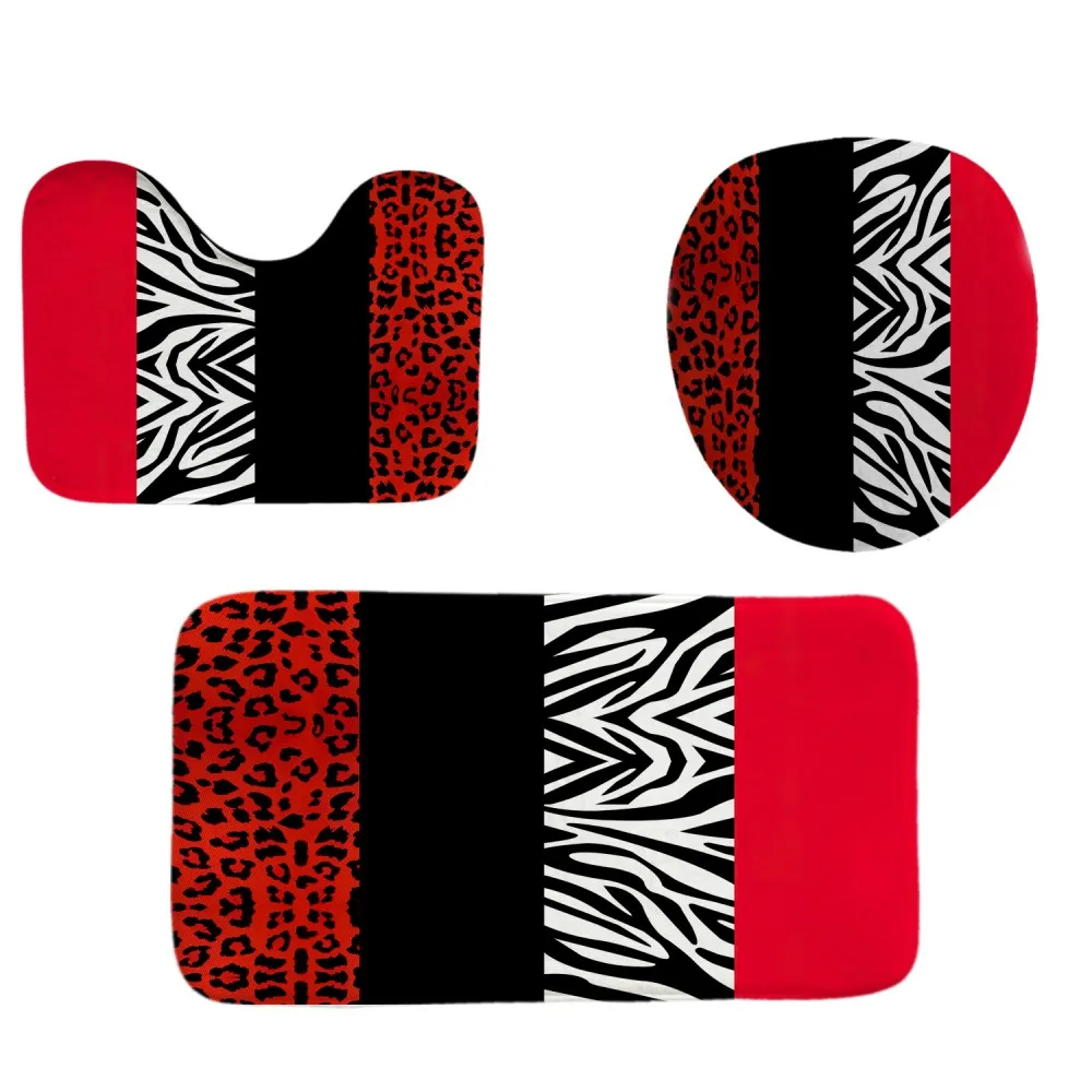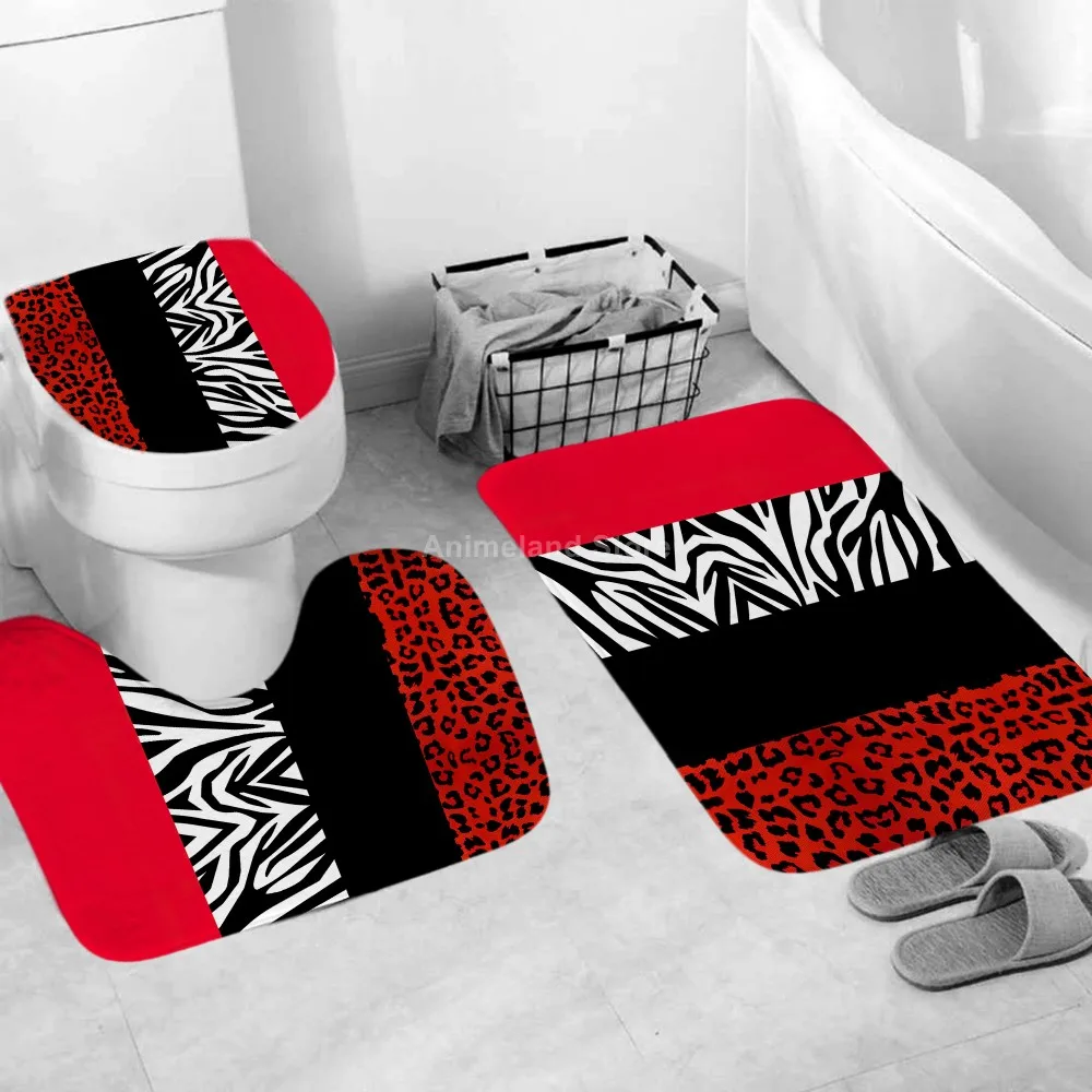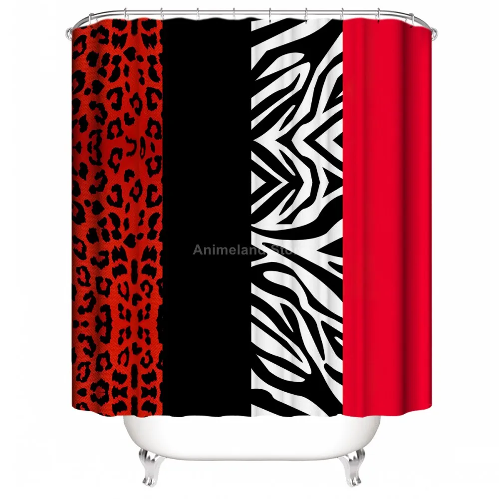Полосатые леопардовые красные и черные занавески для душа, набор для ванной комнаты, модные шторы с узором, Нескользящие напольные и коврики для туалета, наборы ковриков