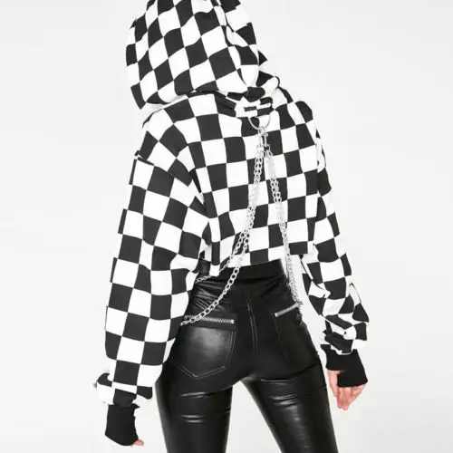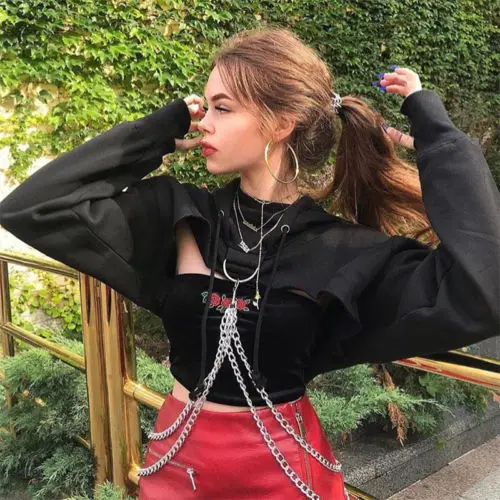 Женская футболка с длинным рукавом, короткий пуловер с капюшоном, в готическом и панк-стиле