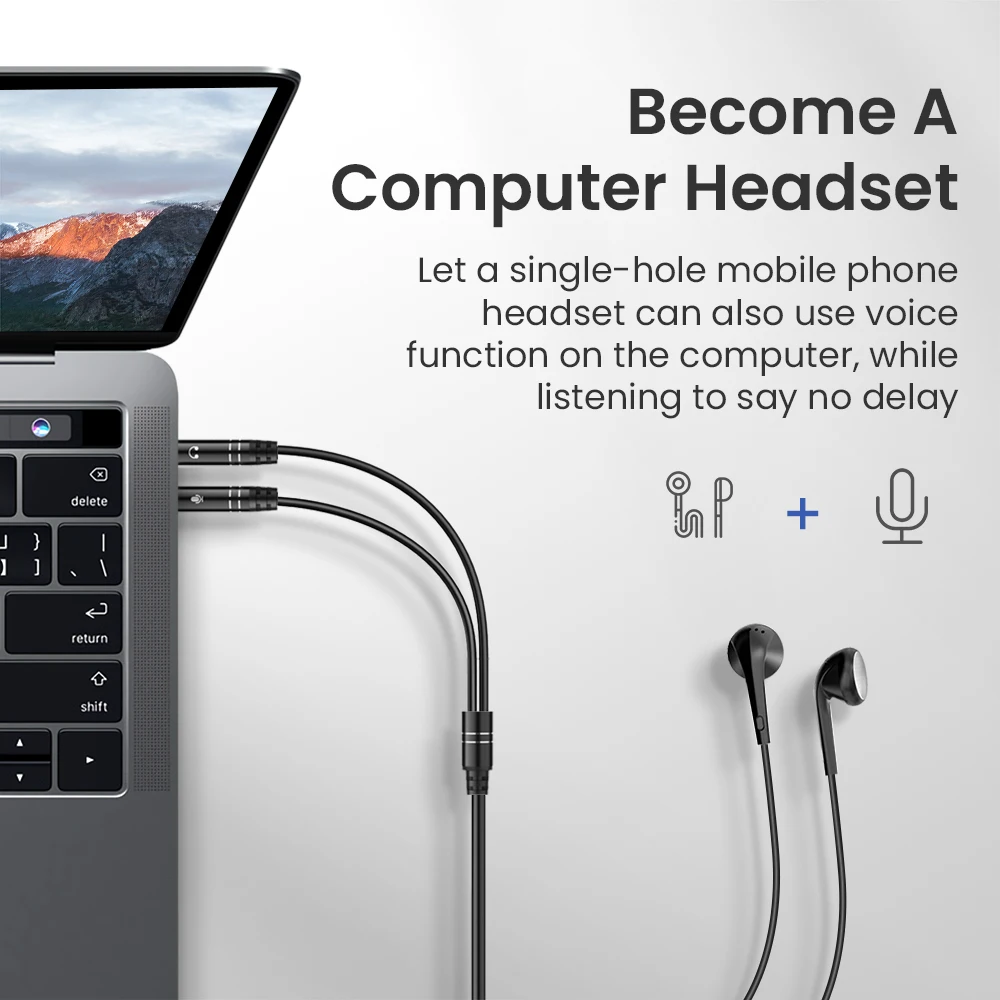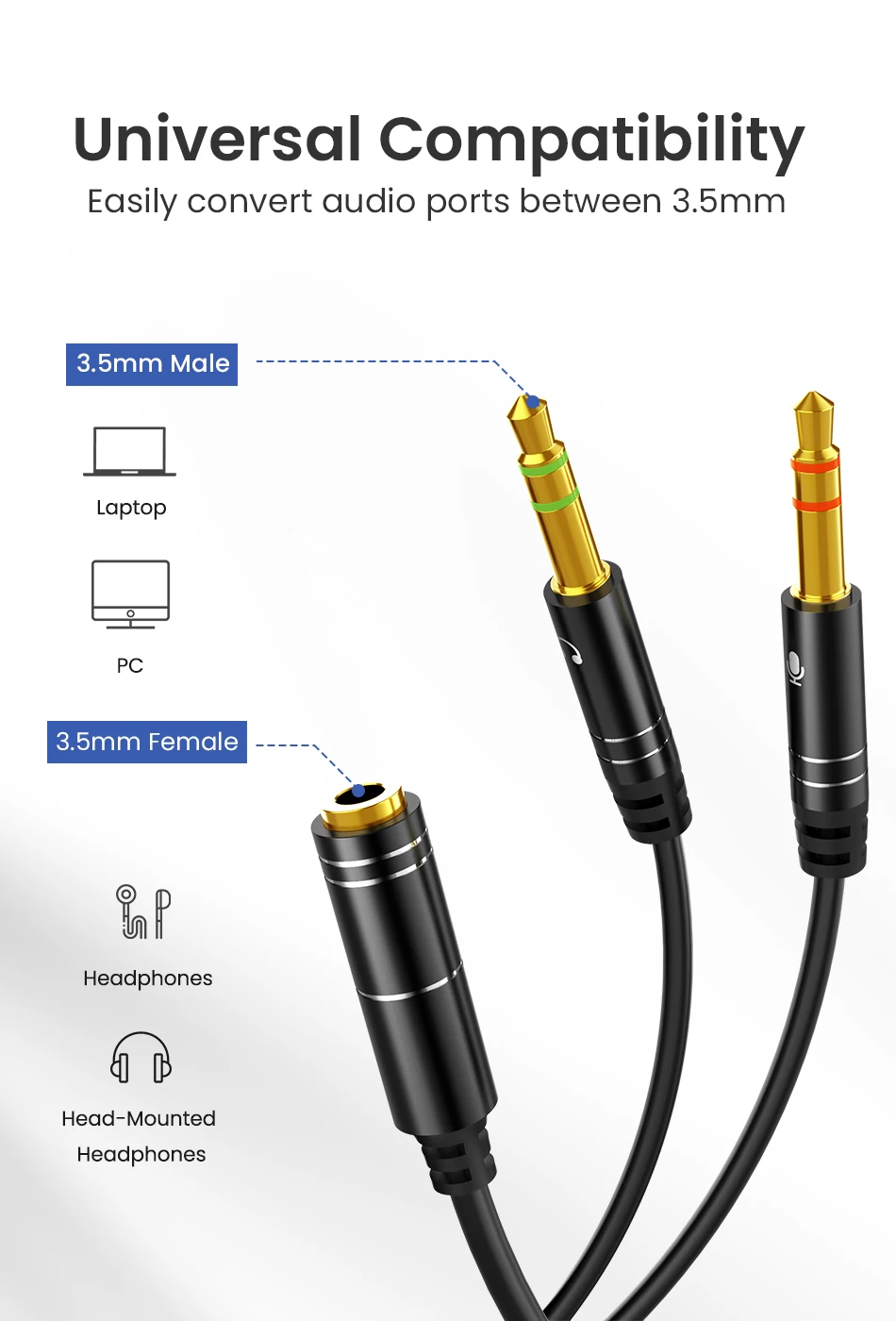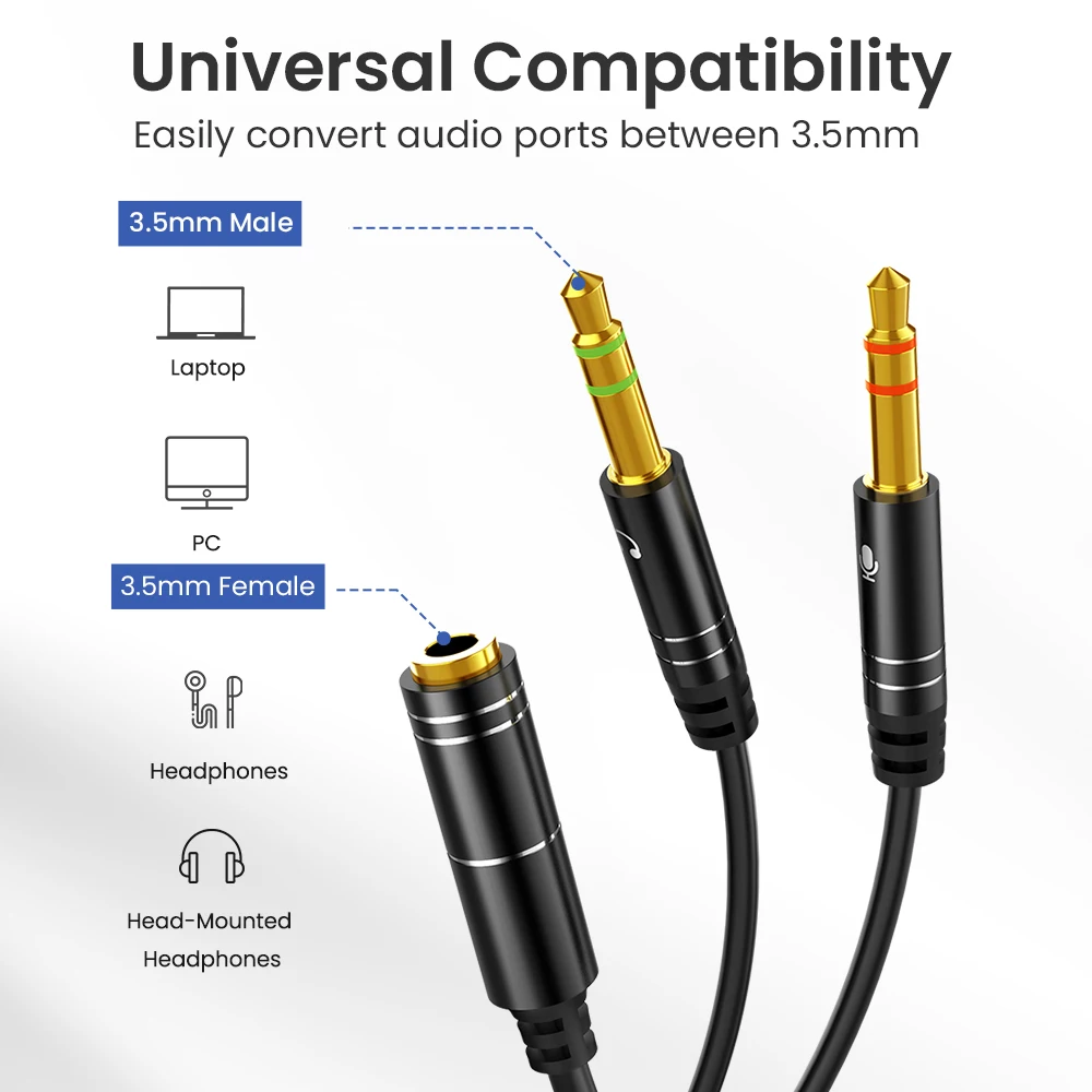 Аудиокабель-разветвитель со штекером 3,5 мм и разъемом Aux для наушников