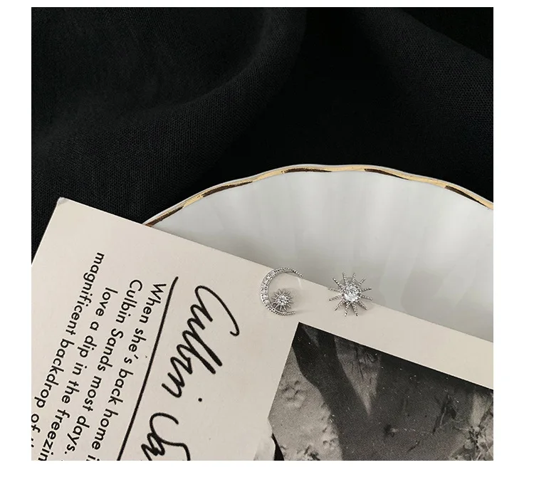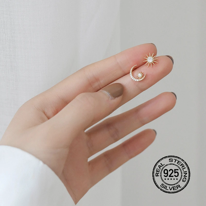 Серьги-гвоздики для Для женщин S925 рафинированного серебра циркона красивые супер мигающий изысканный Солнце Луна звезды Асимметричный INEFFA романтический Элегантные