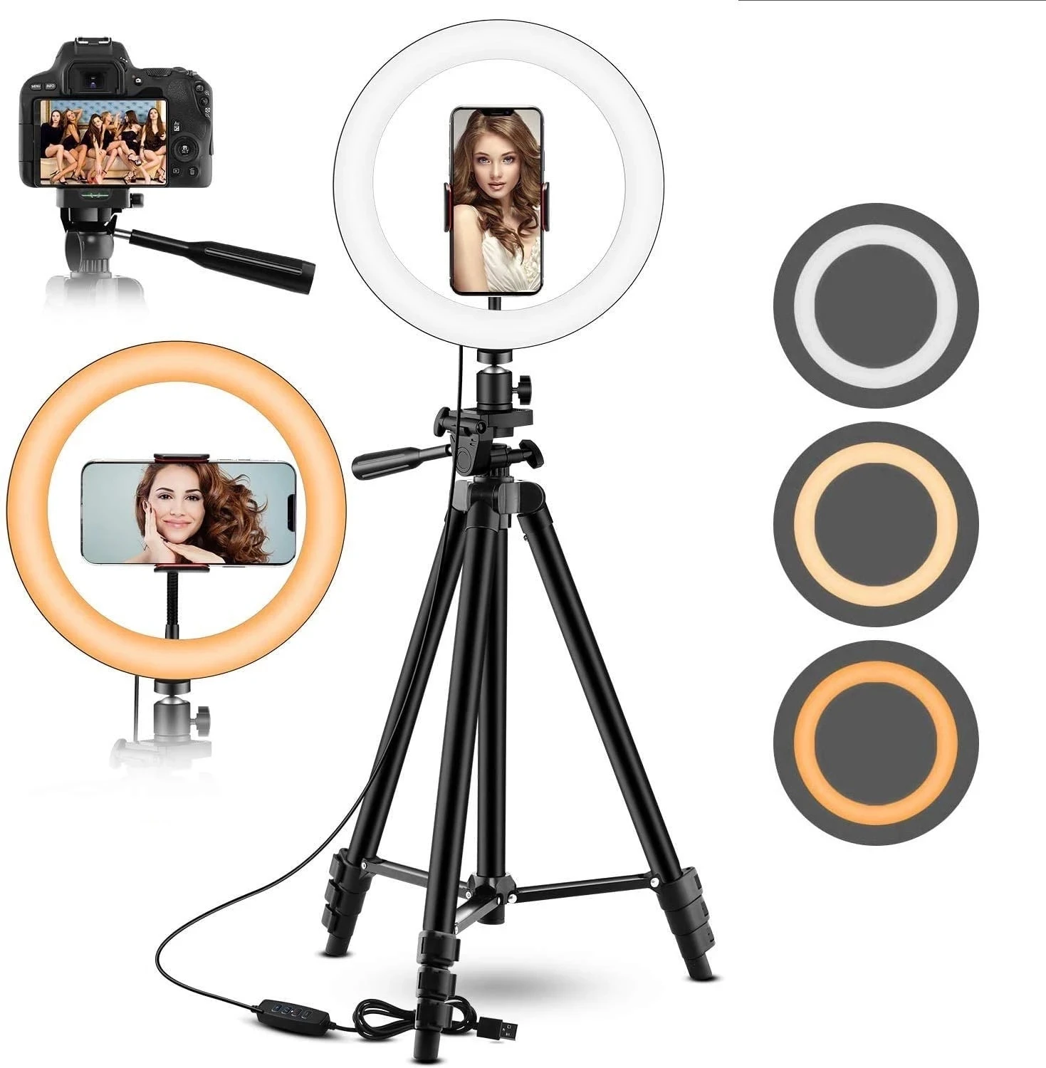 Кольцевой светодиодный светильник для фото 26 см, кольцевой светильник для селфи с дистанционным управлением по Bluetooth для телефона, лампа для фотостудии, держатель для видеосъемки на Youtube