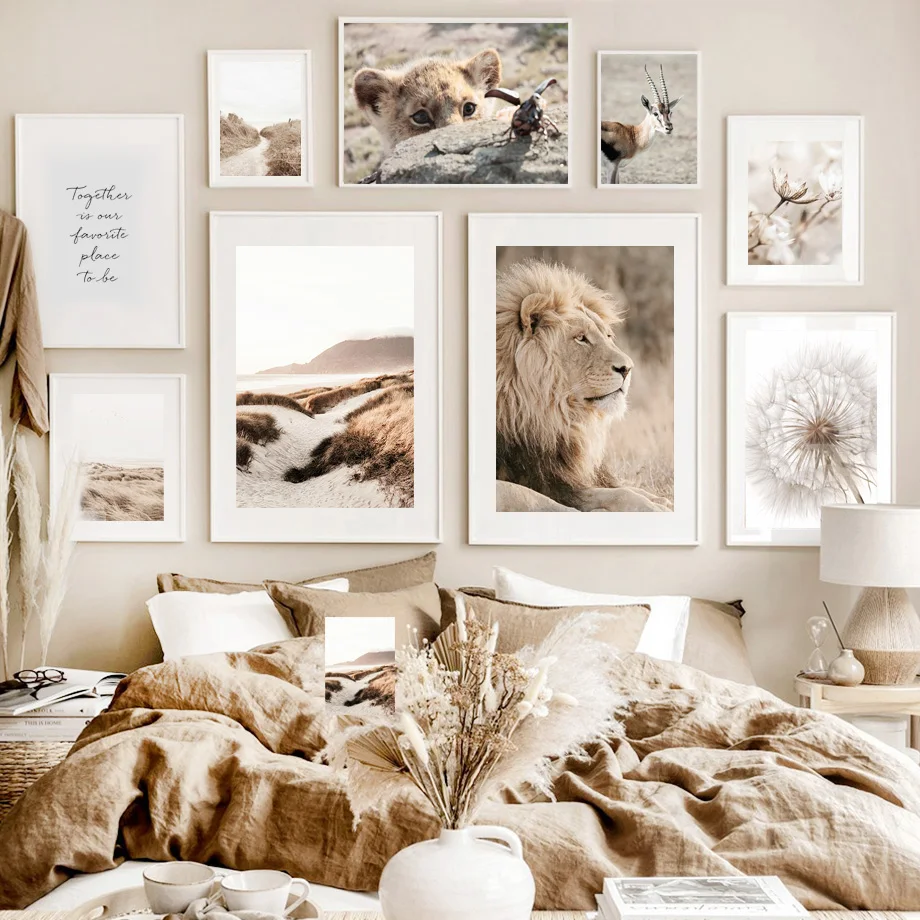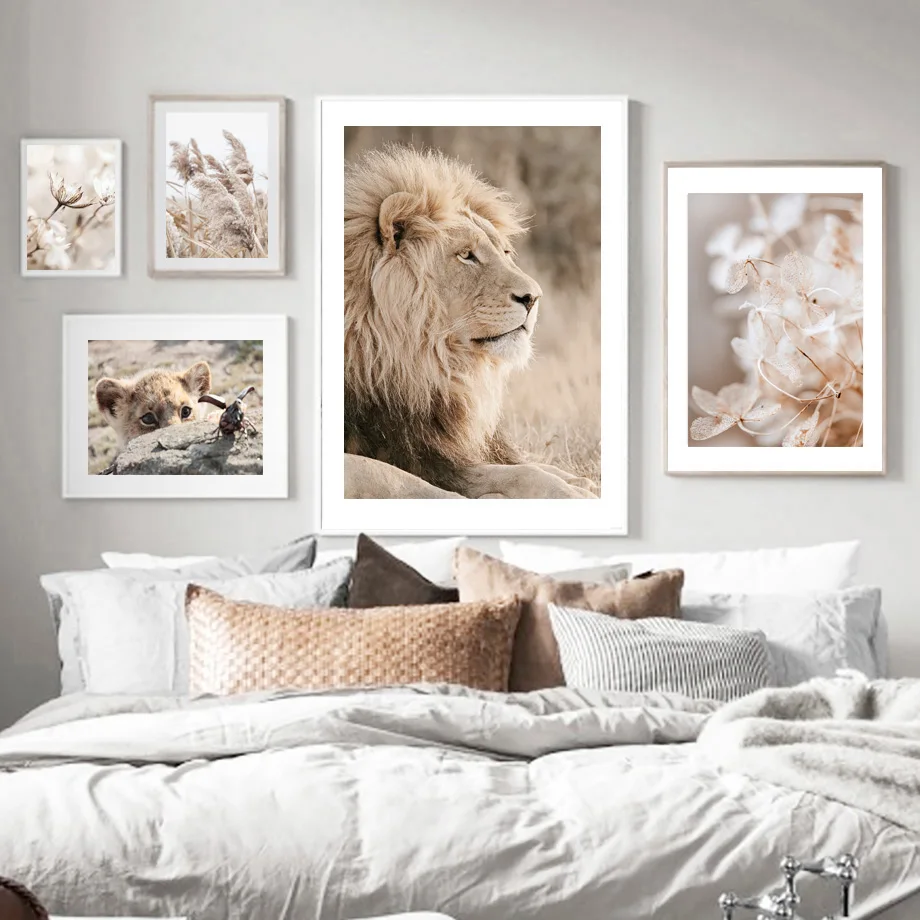 Рид Лев Слон Африканские животные бежевые скандинавские плакаты и п...