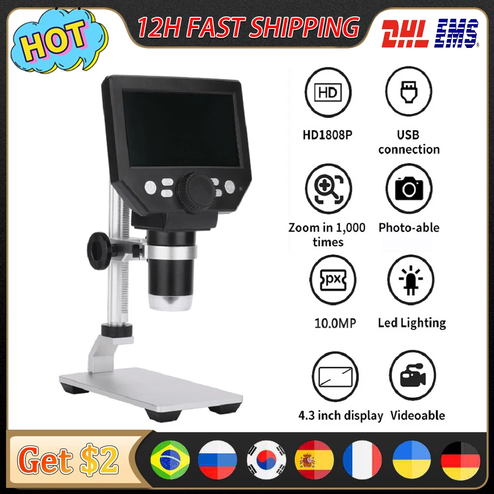 Цифровой микроскоп G1000, 4,3 дюйма, 8 Мп, 1000X