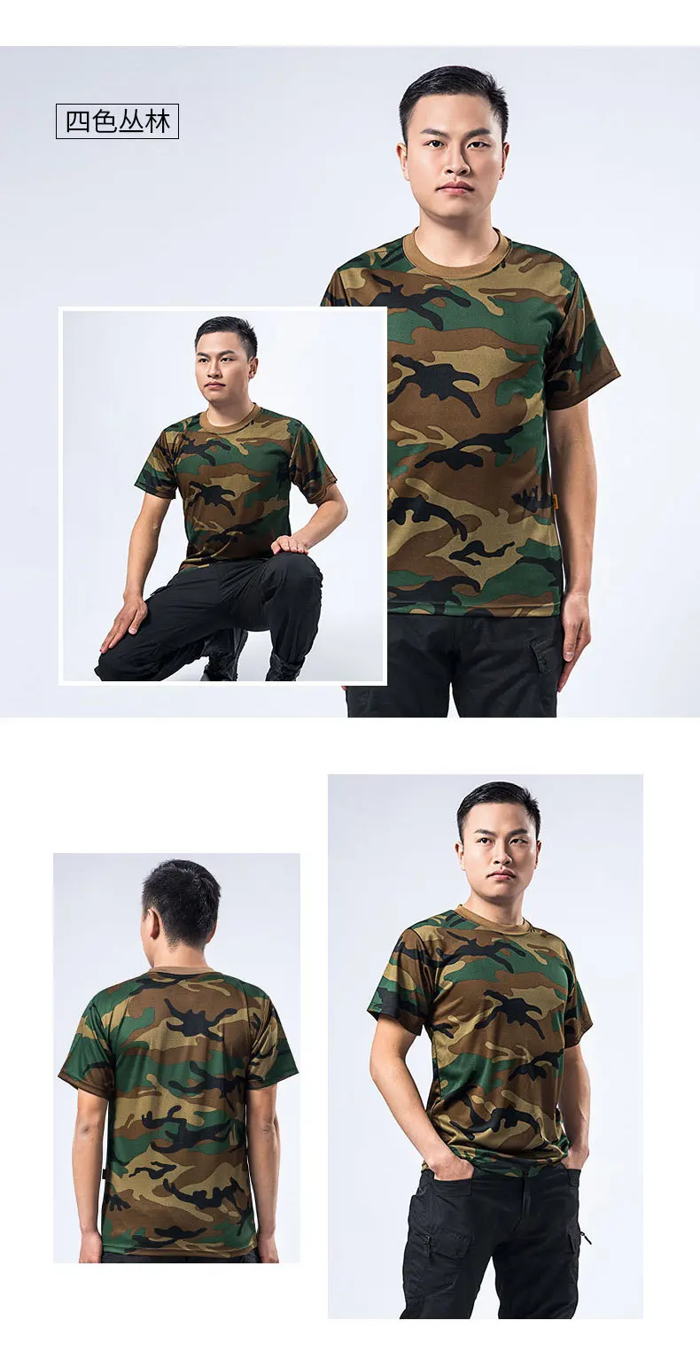 Камуфляж тактический Футболка короткий рукав Для Мужчин's быстросохнущая футболка, Спортивная футболка в стиле милитари футболка камуфляжной расцветки, на открытом воздухе Пеший Туризм рубашки в охотничьем стиле
