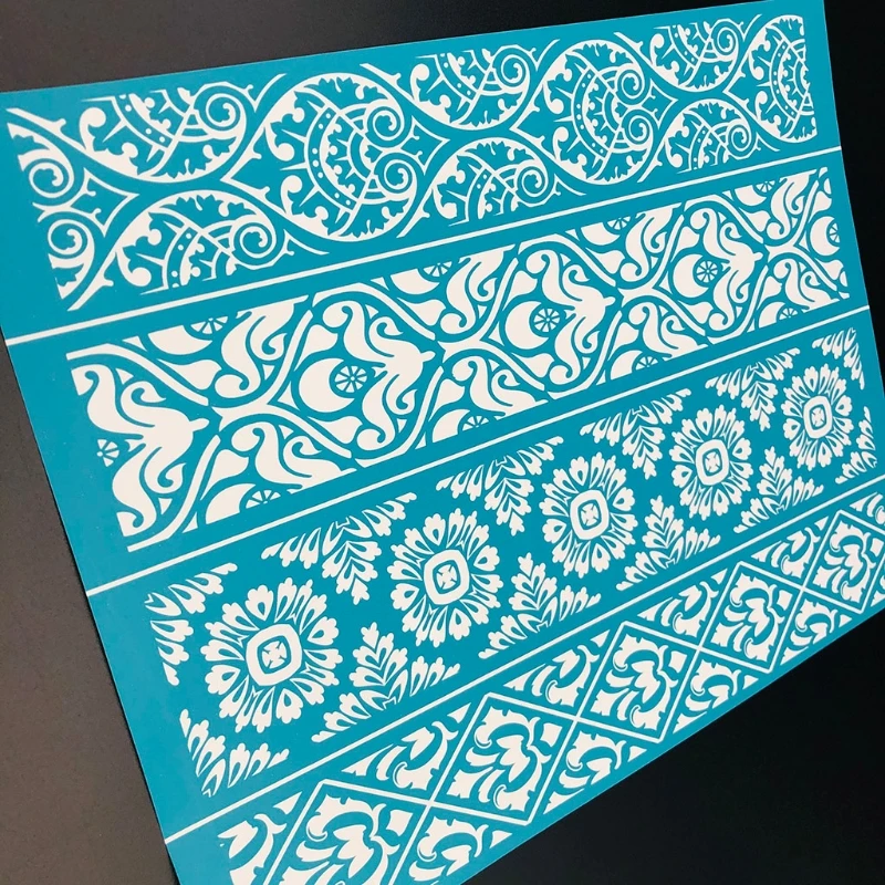 Повторное использование: Наши трафареты имеют клейкую заднюю часть, которая помогает предотвратить кровотечение краски. Трафареты многоразовые и моющиеся. Поэтому можно работать на различных поверхностях с использованием акриловых пигментов.
