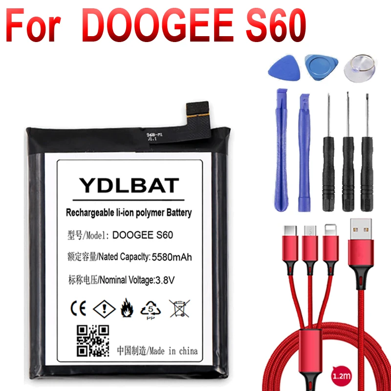 Для DOOGEE S60 BAT17M15580 BAT17S605580 Замена 5580 мАч, Запчасти запасная батарея Для DOOGEE S60 смарт-телефон + USB кабель + набор инструментов