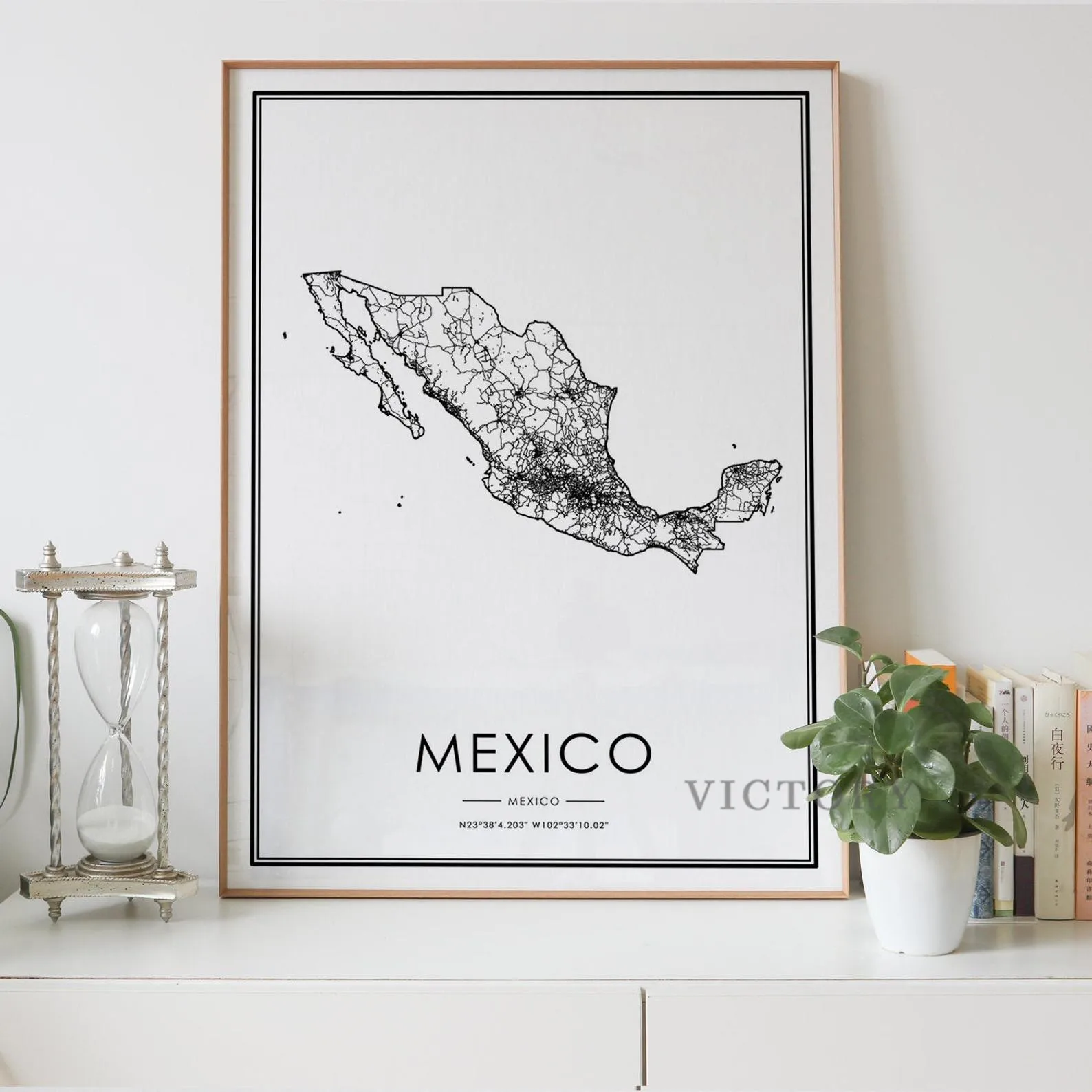 Карта мексиканской страны, скандинавский дорожный принт, украшение для гостиной, холст, плакат, Современный домашний декор, художественный принт, живопись