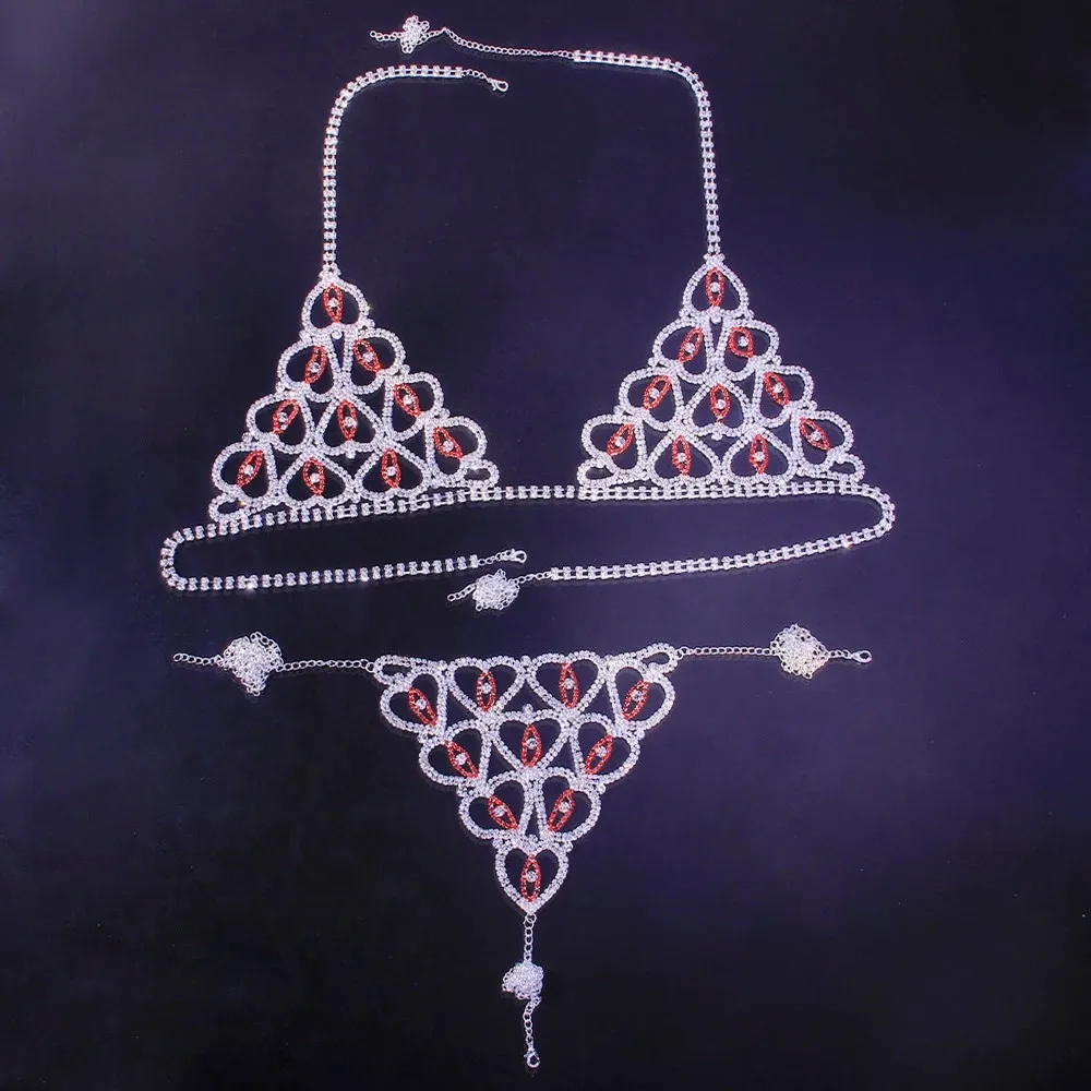 Сексуальные Стразы, бюстгальтер с красными глазами, цепочка для тела, стринги, нижнее белье, трусики для женщин, роскошные украшения для тела, бикини, бюстгальтер, стринги