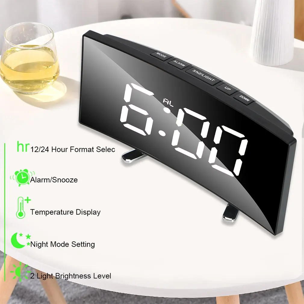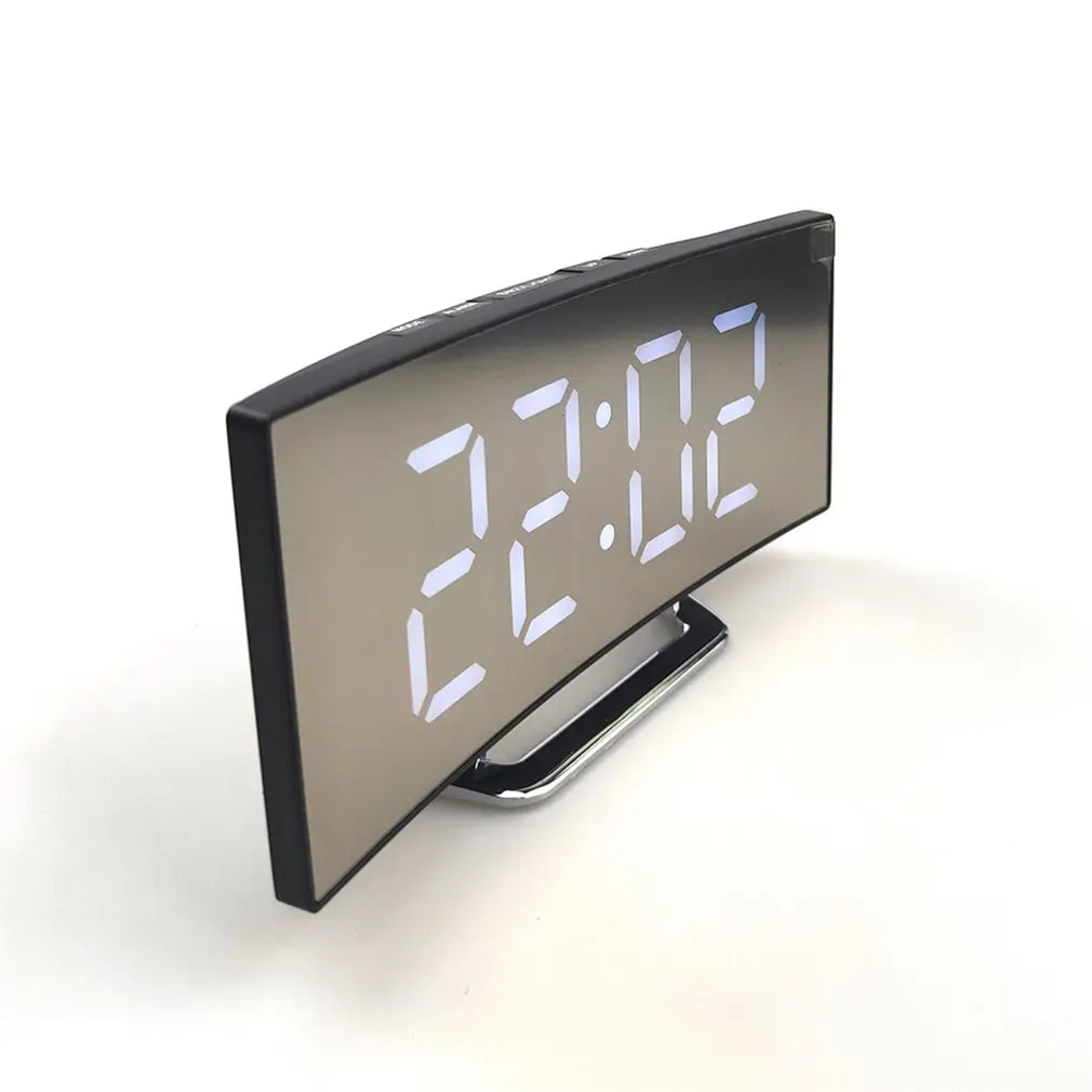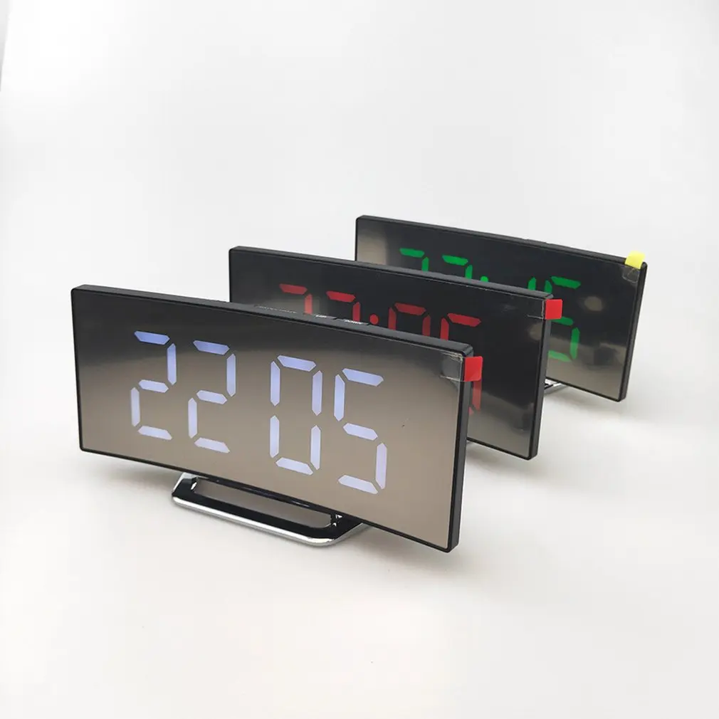 7 дюймов для детей Спальня изогнутые с регулируемой яркостью с серой зеркальной поверхностью светодиодный Экран цифровые часы-будильник домашнего декора большое количество настольные часы
