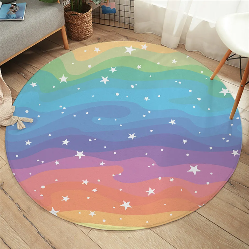 Постельное белье на выход, Радужный коврик для спальни, синий, фиолетовый, круглый ковер, Цветной ковер, нескользящий, звездный, для гостиной, Alfombra, 100 см