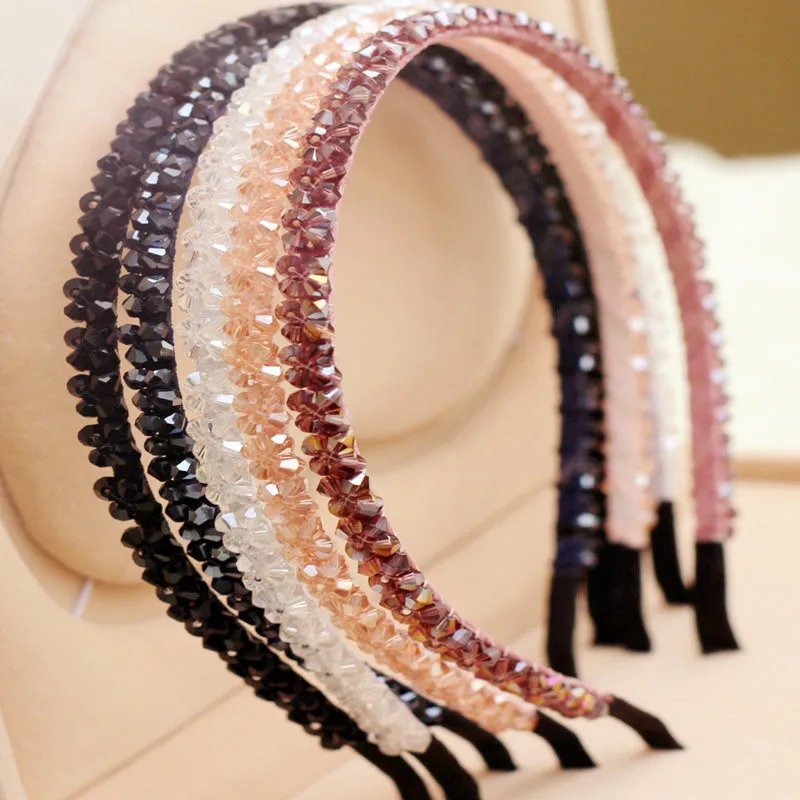 Новый корейский стиль головной убор корейская мода супер мигающий Двойной Ряд Кристалл Ручная работа бисерная повязка diy аксессуары для волос