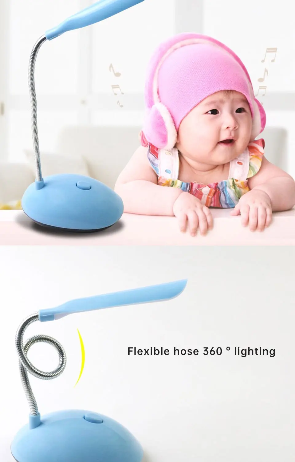Особенности: 1. Один ключ, прост в использовании. 2. Светодиодный, мягкий, без вспышки, защищает глаза 3. Работающий от аккумулятора, избавьтесь от длинного шнура питания, поместите его куда угодно. 4. Гибкая гусиная шея, вращение на 360 градусов, изгиб каждого направления, как вам нравится. Уникальный изогнутый шланг, высококачественный силикон, бесшовное соединение и естественный дизайн. Он отлично работает как в помещении, так и на открытом воздухе. 5. Легкий и легко носить с собой. Это отличный компаньон для взрослых и детей во время путешествий, кемпинга, работы, учебы и чтения.