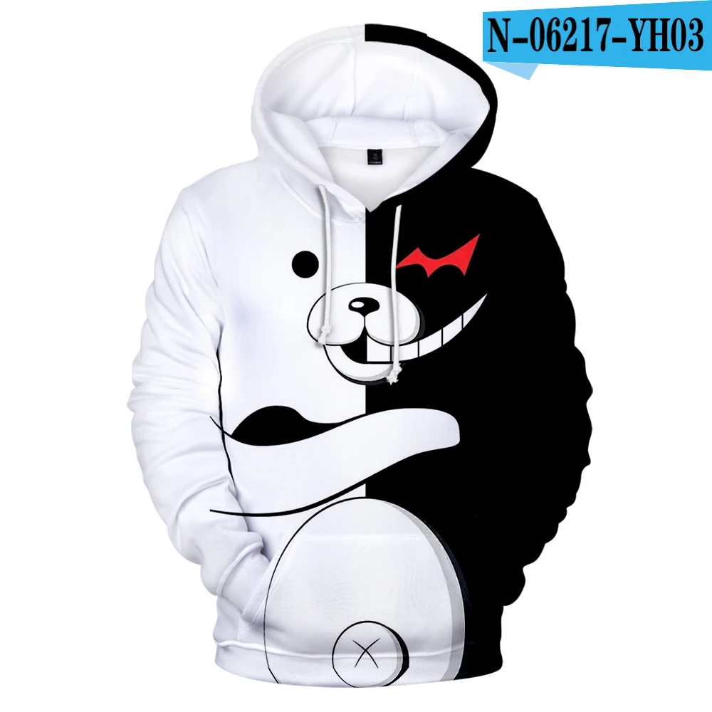Худи Danganronpa Merch 3d Monokuma Косплей Костюм Аниме Толстовка Kawaii пуловер детская одежда Повседневный оверсайз черный белый