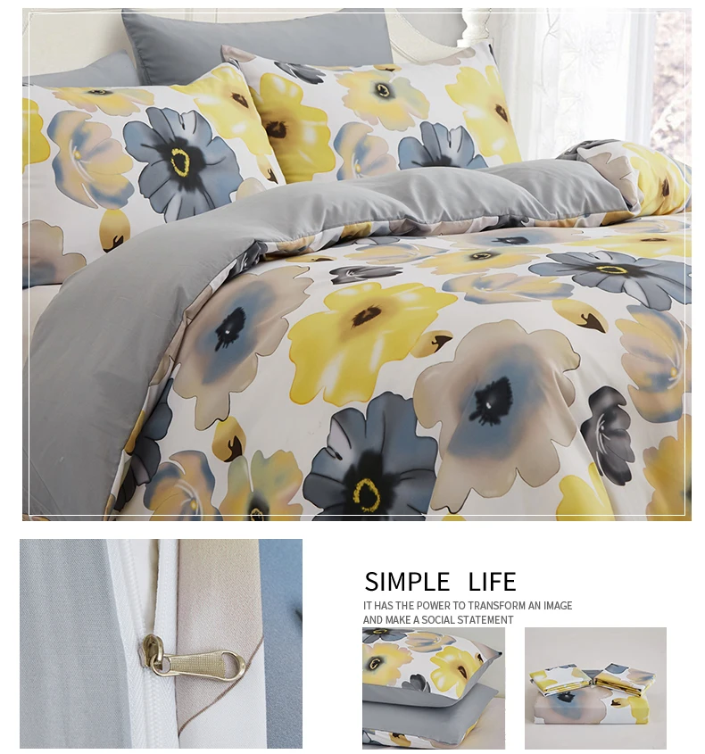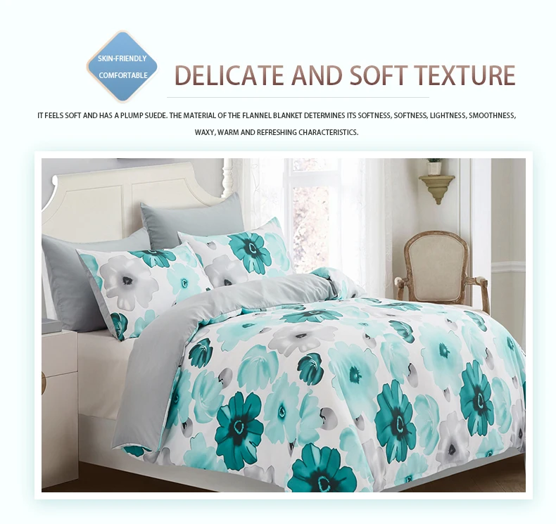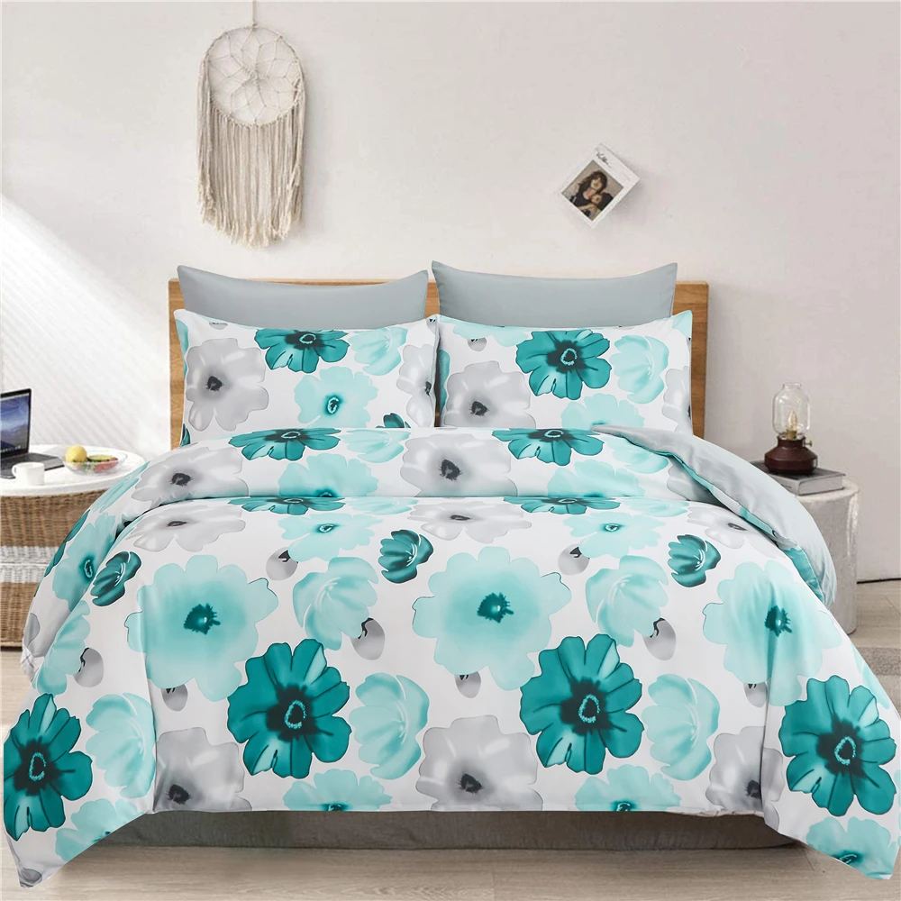 Комплект постельного белья, двуспальная кровать, с цветочным принтом, пододеяльник, Королевский размер, голубой пододеяльник, наволочка, удобное односпальное и двуспальное белье
