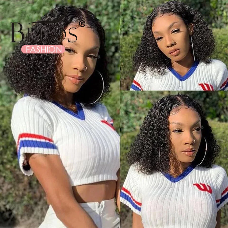 Парик с кудрявым Бобом 13x4, парики из человеческих волос на сетке ...