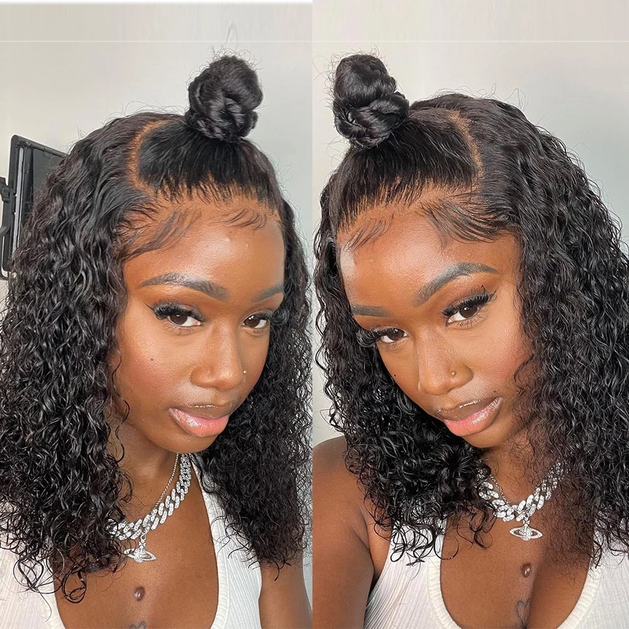 Короткий парик Bob Jerry с кудрявыми волосами 4x4, фронтальные парики из человеческих волос, бразильские волосы с глубокой волной, предварительно выщипанные волосы 4x4, плотность 180%