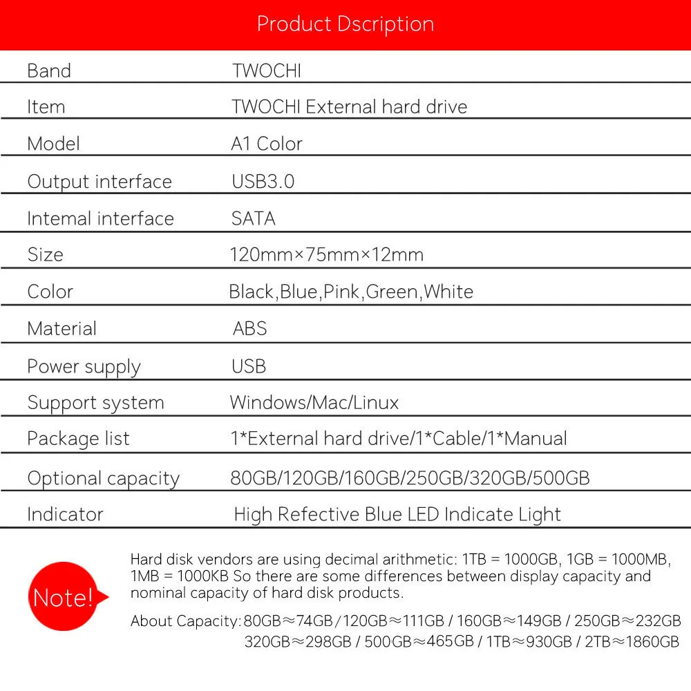 Внешний жесткий диск TWOCHI A1, 2,5 дюйма, USB 120, 80 Гб160 Гб250 ...