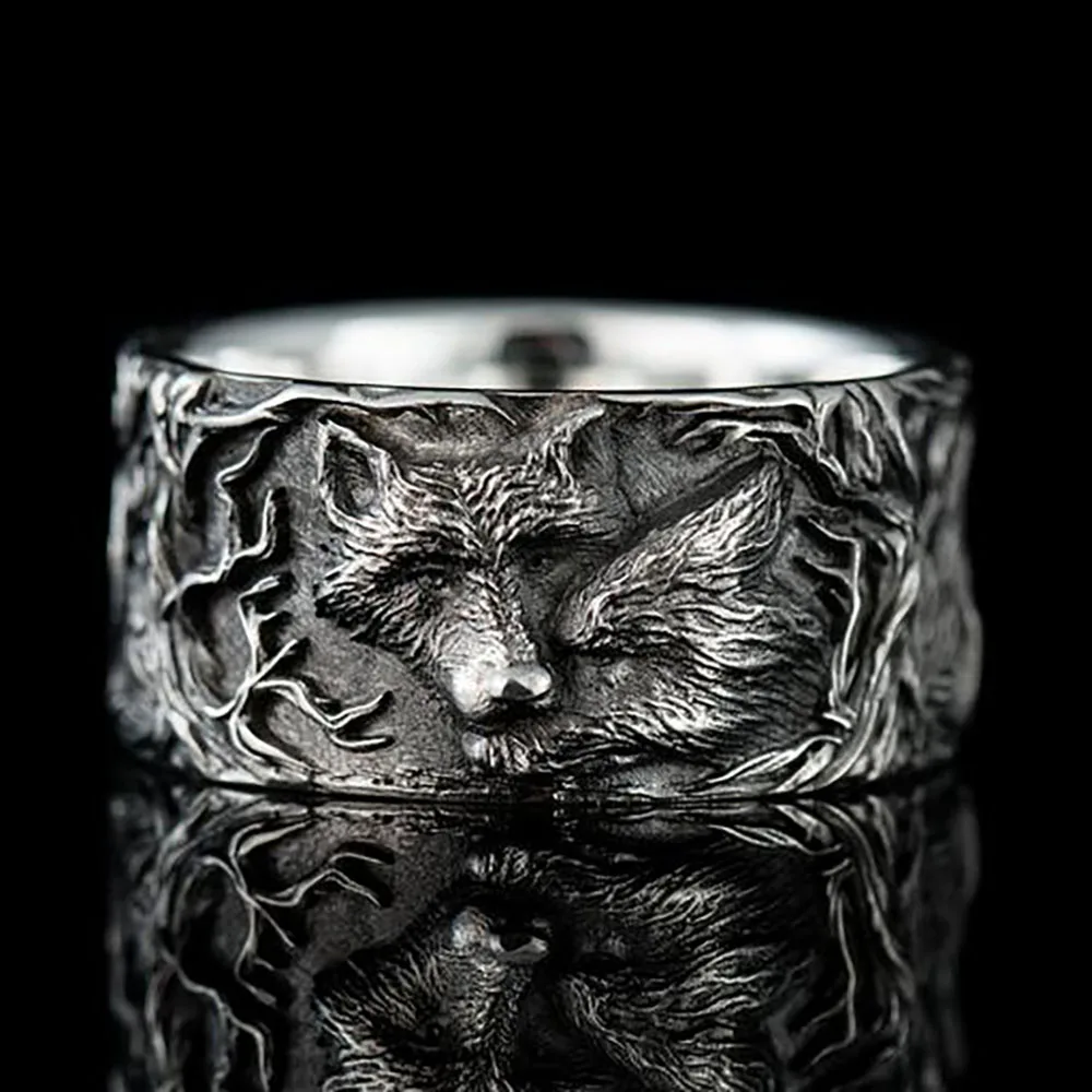 Кольцо с волчьим узором в стиле рок для мужчин и женщин, черное металлическое Клубное кольцо в стиле панкхип-хопвикингов под старину