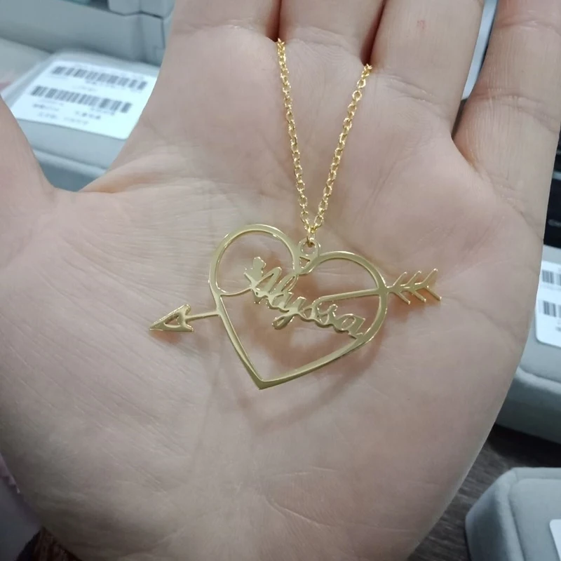 Ожерелье с сердечком и стрелой для женщин, ожерелья с именами на заказ, высокое качество, кулон, подарки ручной работы, свадебные украшения