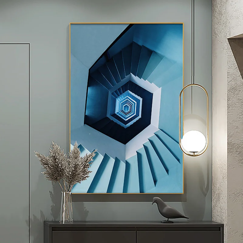 Окрашенные цветные городские архитектурные сооружения винтовая лестница фотография холст Картина Настенная бескаркасная картина постер украшение для гостиной