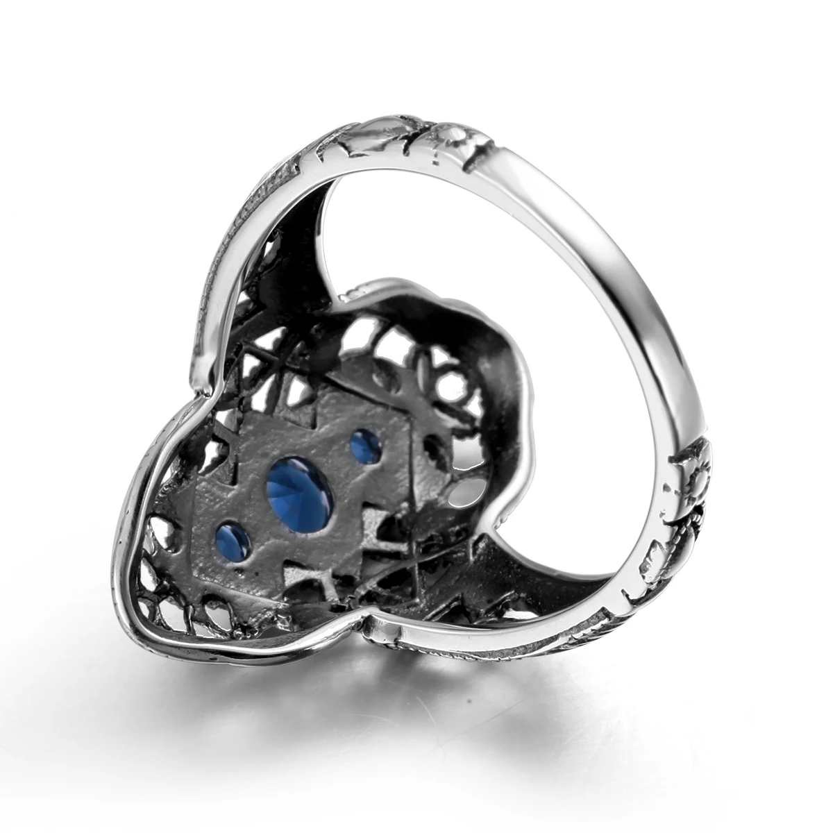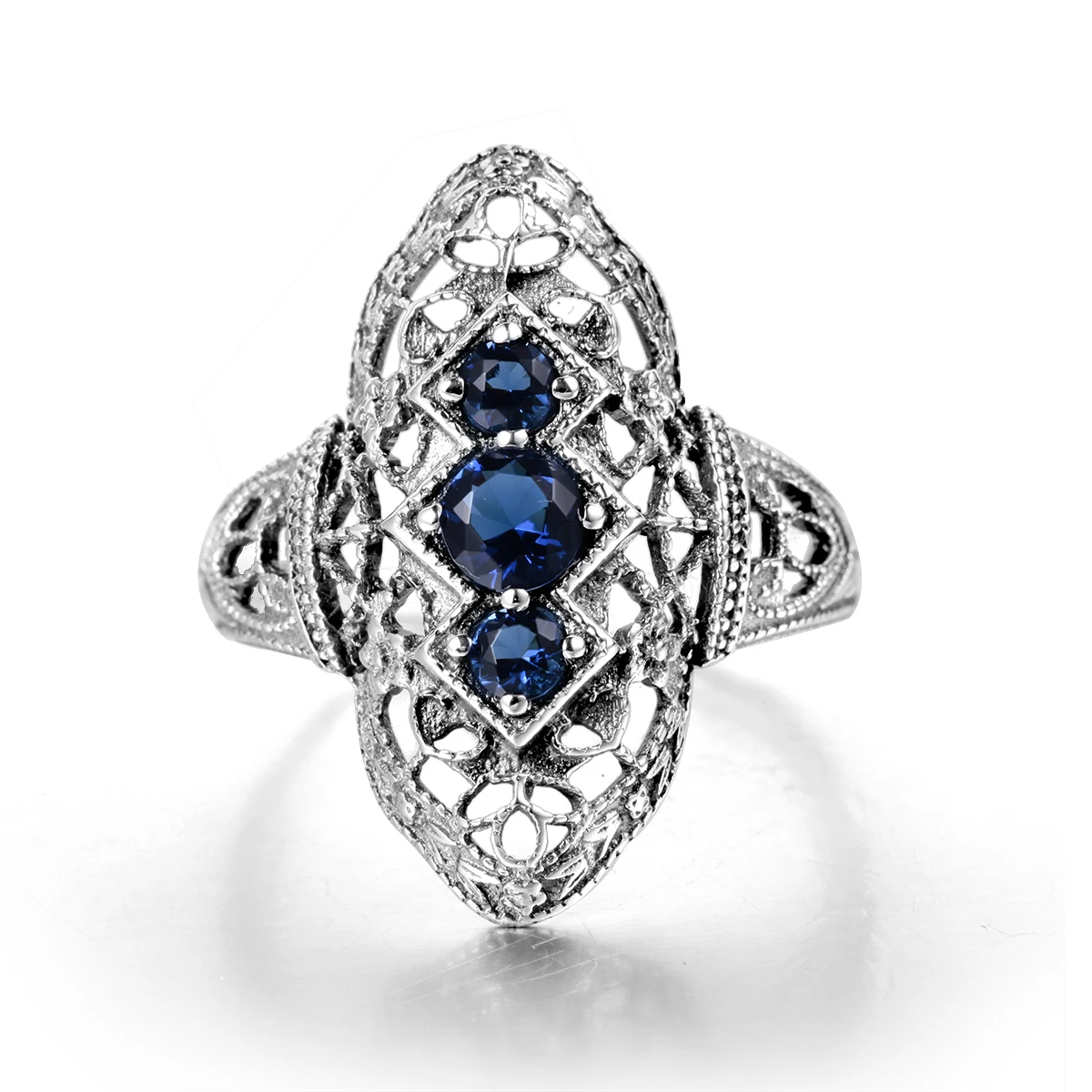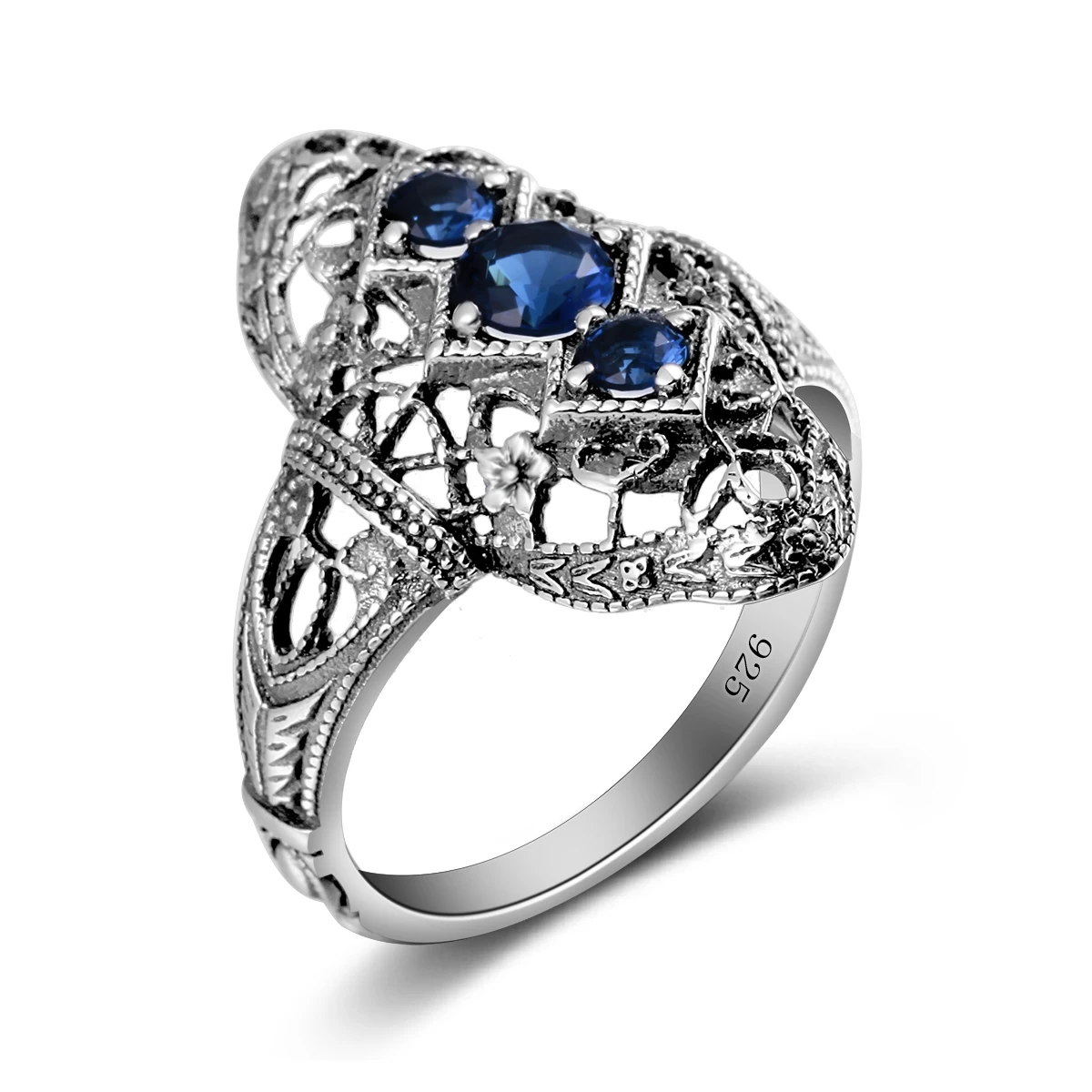 Женское кольцо с сапфировым стеклом, винтажное ажурное кольцо из серебра 925 пробы с цветком, ручная работа, подарок на вечеринку, банкет, День матери